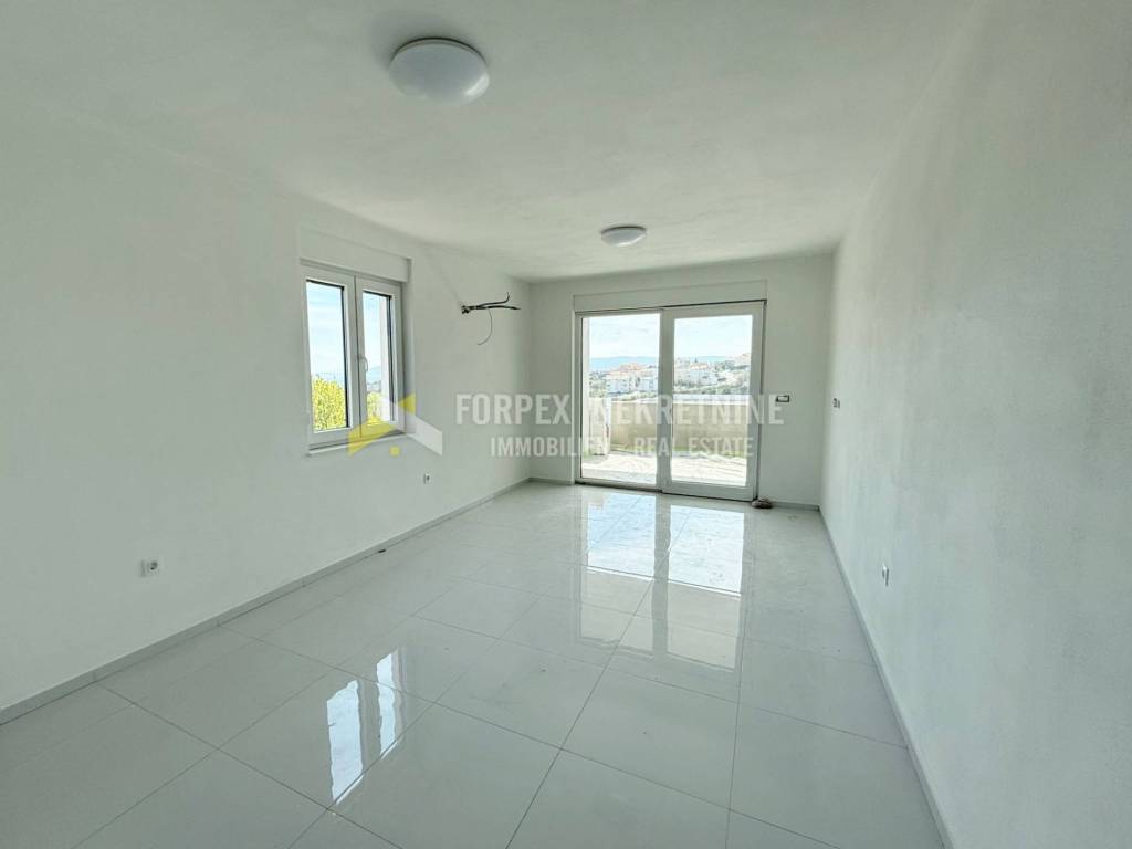 It is equipped with quality ceramics, sanitary ware, interior joinery, PVC joinery, air conditioning, and quality building materials were used during the construction. The apartment has one parking space within the building's yard. The property is located near the city center, and only a 10-minute walk from the first beach and marina. The planned completion date of the works is summer 2025.