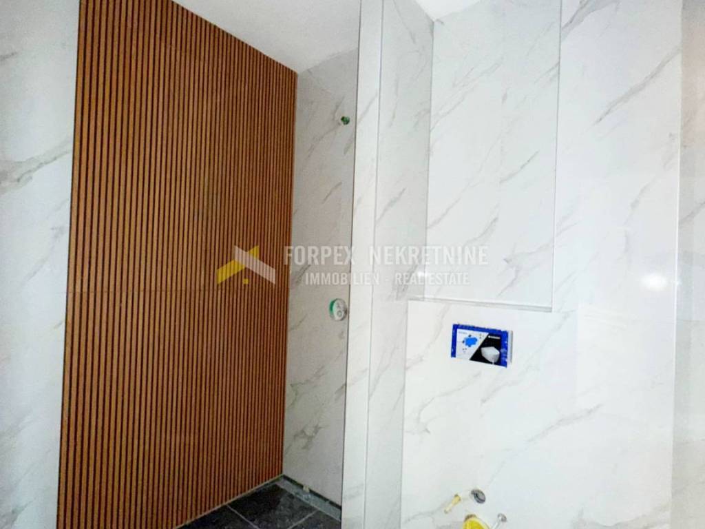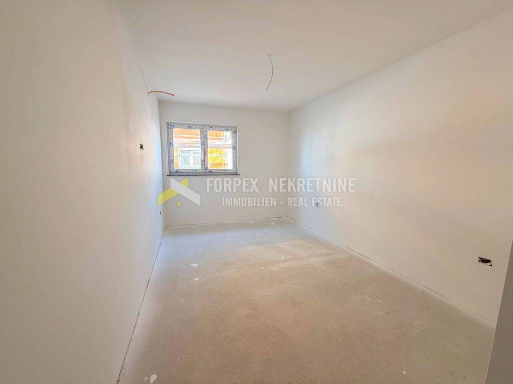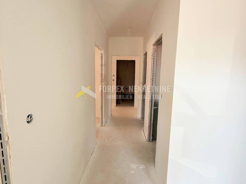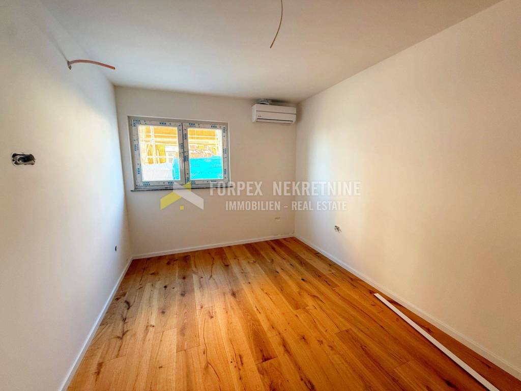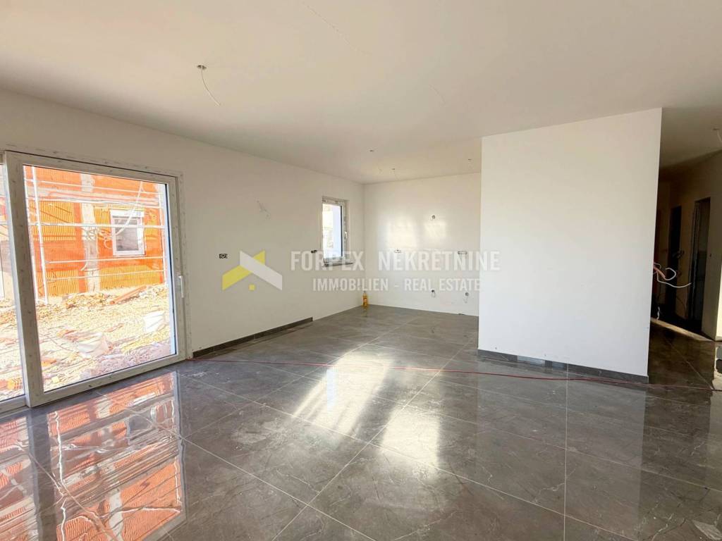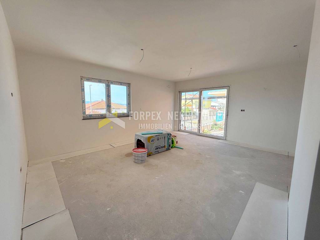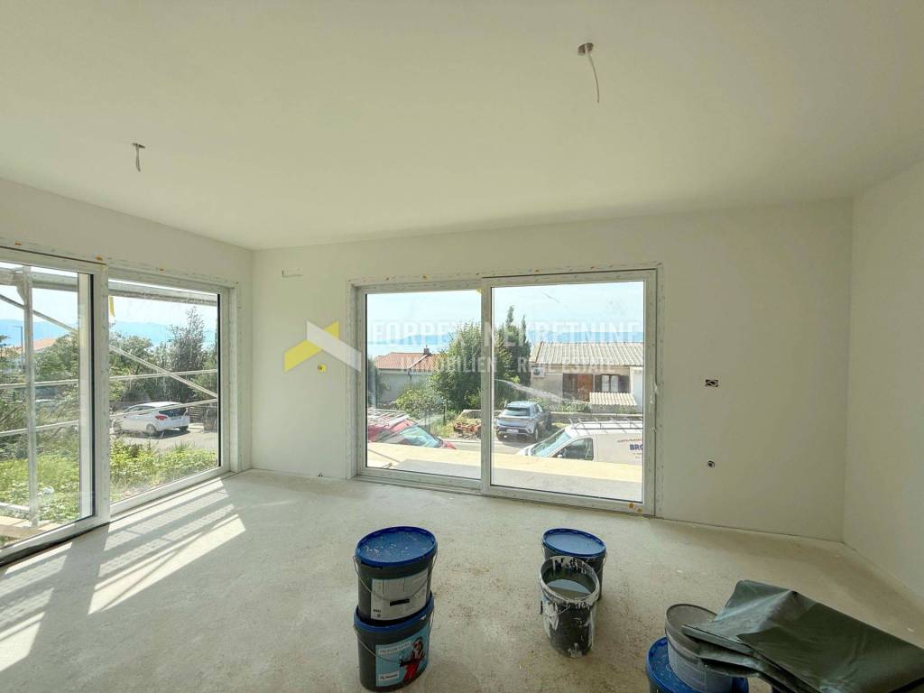 In Novi Vinodolski, in an attractive location 300 meters from the sea and the first beach, an apartment of 92 m2 is for sale in a new building. The apartment is located on the high ground floor of a building with a total of 6 apartments. It consists of three bedrooms, a hallway, two bathrooms, a kitchen with a dining room, a living room with access to a terrace with a sea view.