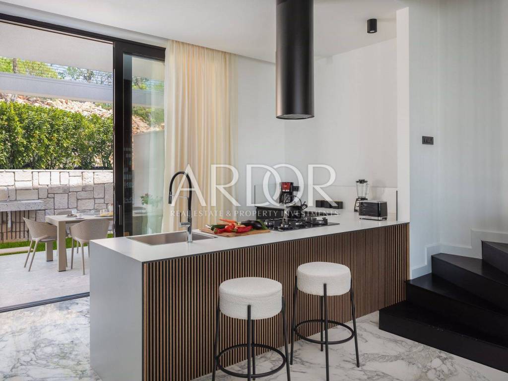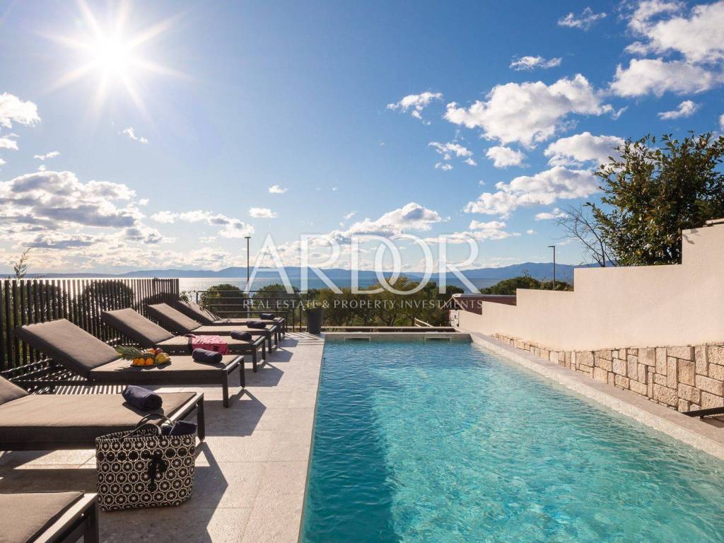 Kostrena, we are mediating the sale of a modern, luxuriously furnished semi-detached villa with a swimming pool and a wonderful open sea view located in a prime location in the immediate vicinity of the sea and beaches!