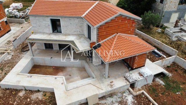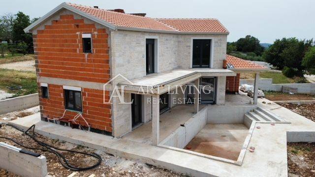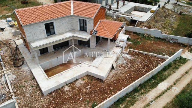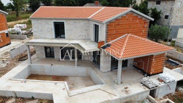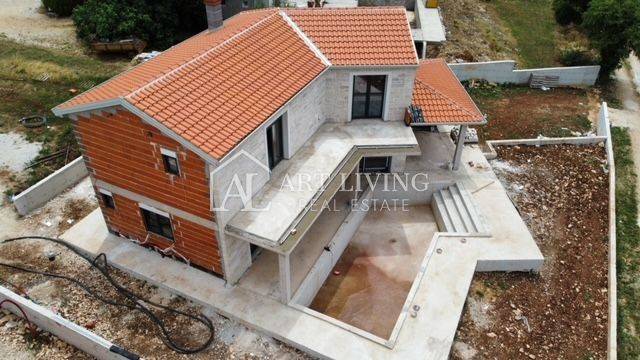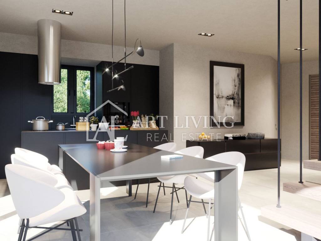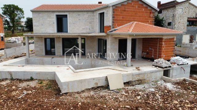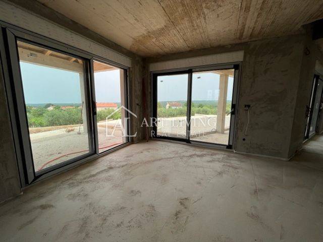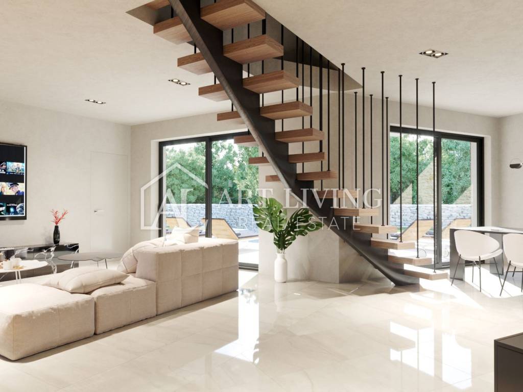 A beautiful Villa in the Istrian style of modern architecture with a swimming pool and an open view of the sea and the landscape is for sale. The villa is located in a quiet location and is surrounded by nature and greenery. It is 8 km from the sea and the city of Poreč.