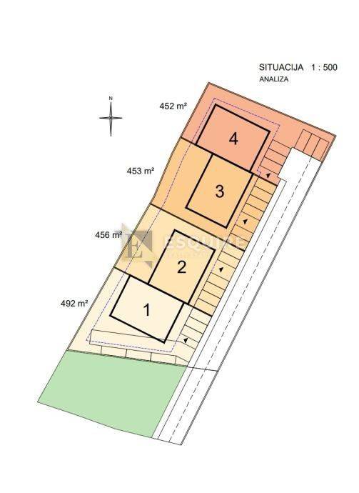 Zemljište je pravilnog oblika, pretpostavljeno za gradnju 4 stambene zgrade.
