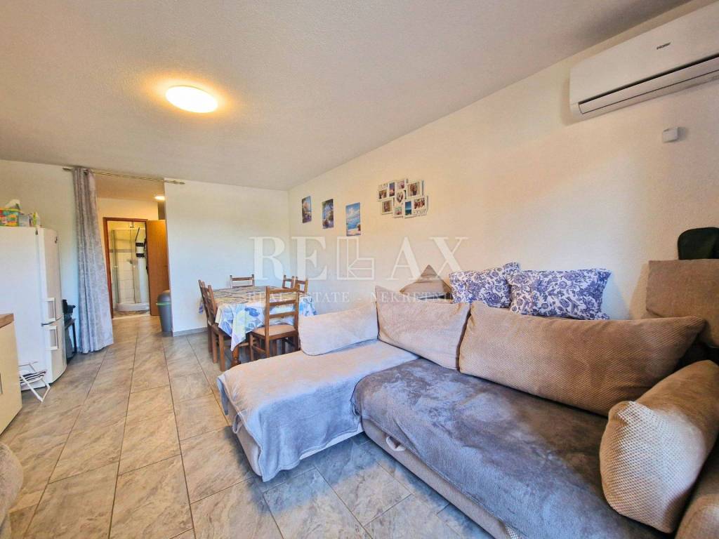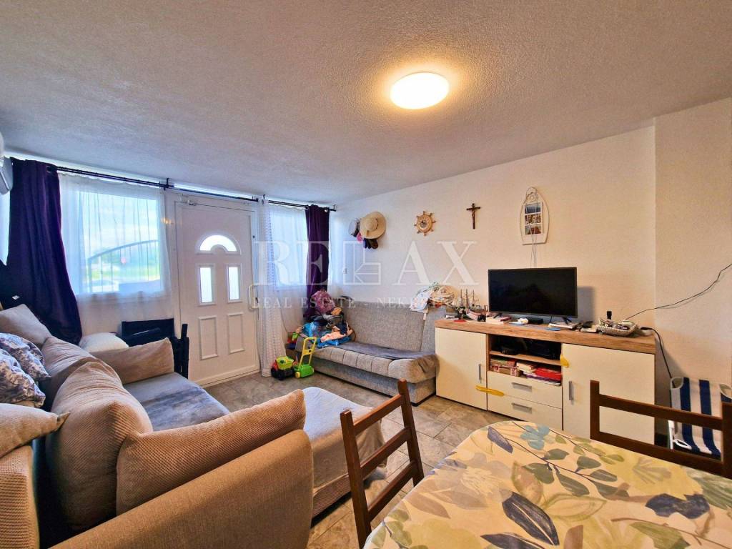 In an attractive location in Novi Vinodolski, just 220 meters on foot from the sea and 400 meters from the town center, this functional and fully furnished two-level apartment with a total area of 65.72 m² is situated. Located on the ground and first floor of a building constructed in 2006, it represents an ideal opportunity for family living or vacation.