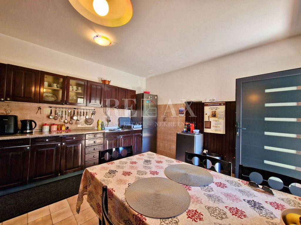 In a quiet part of Novi Vinodolski, just 1 km from the sea and the town center, lies this functional floor of a house with a total living area of 130 m². Located on the first floor, the property includes a spacious three-bedroom apartment and two separate studio apartments—one on the same floor and the other on the ground floor of the building.