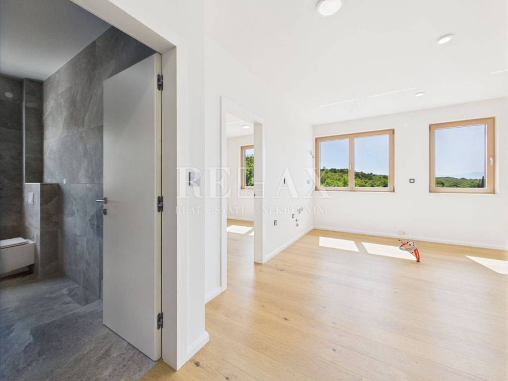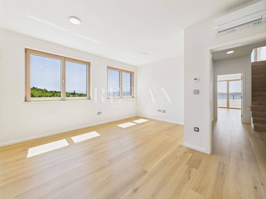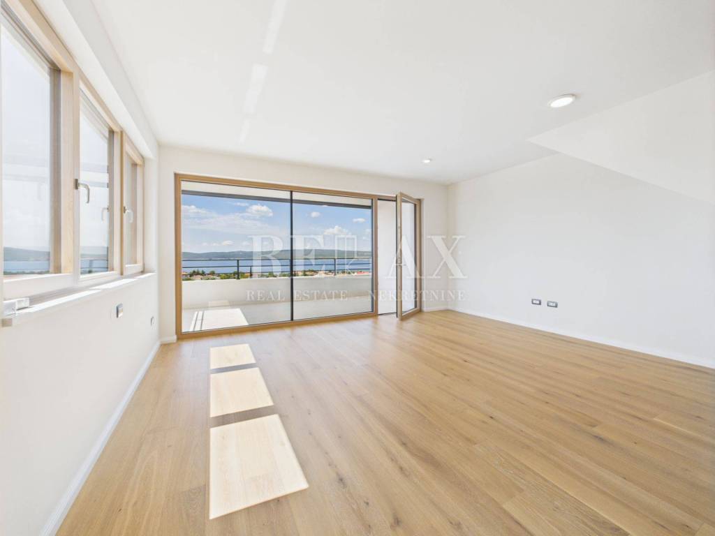 In a quiet part of Selce, just 850 meters on foot from the sea and the town center, a spacious two-story apartment with a total area of 150.48 m² is for sale, located in a high-quality new building from 2023. This exceptional property combines comfort, modern technical equipment, and a rare convenience – an elevator that leads directly to each floor of the apartment.