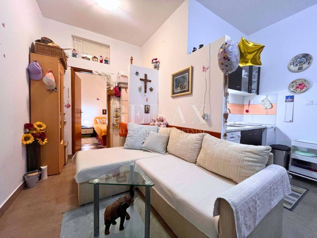 In a quiet location in Novi Vinodolski, this 31 m² apartment is situated on the ground floor of a smaller building. Located just 1.2 km of an easy, completely flat walk from the sea and 1 km from the town center, this property offers an excellent balance between privacy and proximity to all amenities.