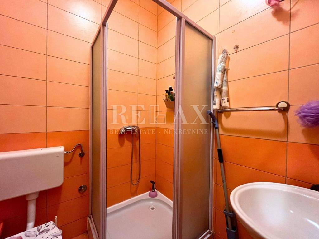 In front of the entrance is a shared, covered hallway used as a terrace – although not owned, it contributes to everyday comfort. The apartment also comes with a private parking space of 12 m², a significant advantage in a city location.