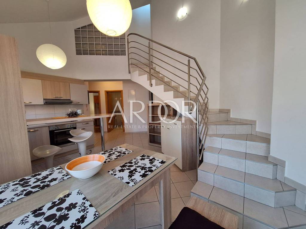 In a quiet and well-maintained part of Kastav, in a modern, recently built building with an A+ energy certificate, an exceptionally spacious duplex apartment of 120 m² is available for rent, located on the second floor. The apartment stands out for its quality workmanship, functional layout and pleasant ambience that perfectly combines the comfort of a family home with modern design.