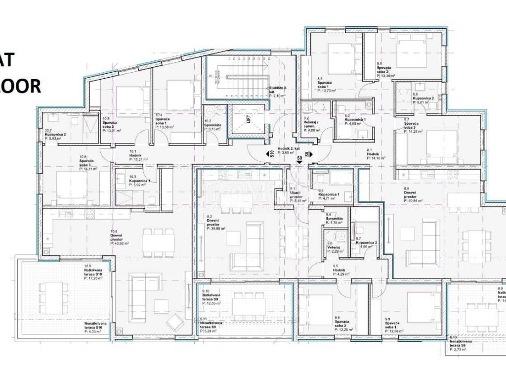 Residential unit S10, located on the 2nd floor of the building, oriented to the west, has 125.50 m2 of usable area, consists of an entrance hall, 2 bathrooms, storage room, 2 bedrooms, open space kitchen with dining room and living room and exit to a spacious covered terrace of 21.52 m2. The apartment has a storage room in the basement and one parking space.