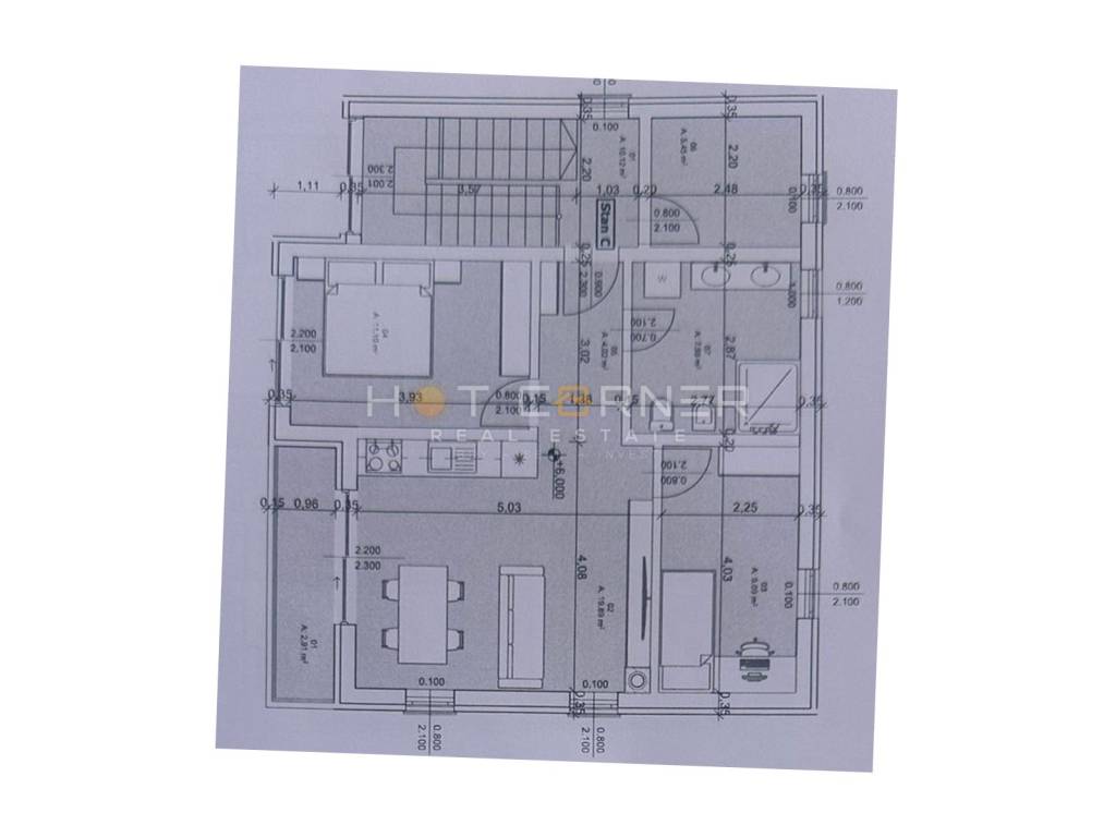 The building consists of only three residential units, which ensures peace, privacy and a pleasant atmosphere for living. The total area of ​​the apartment is 55 m² of interior space, and the layout of the rooms has been carefully designed to provide maximum comfort and functionality. The apartment consists of two bedrooms - the larger one with an area of ​​11.10 m² and the smaller one with an area of ​​9.09 m², a spacious living room with a kitchen and dining room with an area of ​​19.89 m², a bathroom with a window with an area of ​​7.99 m² and an entrance hall with an area of ​​4.02 m². In addition, the apartment has a loggia with an area of ​​3.88 m² (calculated 2.91 m²), ideal for relaxing and enjoying the outdoors.