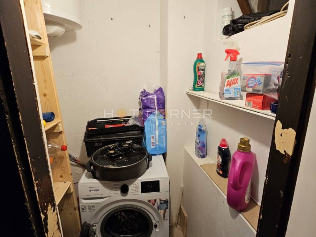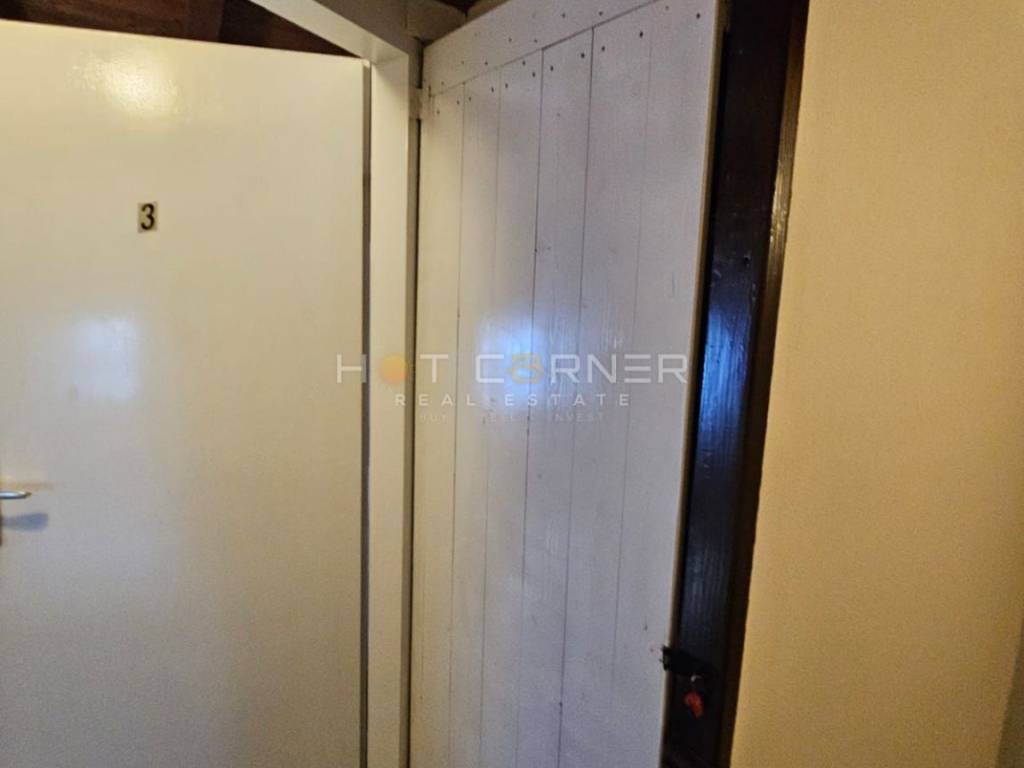 The ground floor includes a room with a kitchenette, a laundry room, and a bathroom. On the first floor there are two more bedrooms, one used as storage and the other rented out with a separate bathroom. The next floor has two bedrooms each with its own bathroom and an additional storage room. On the third floor there are two more rooms with beautiful wooden beams on the ceiling, each with its own bathroom, and the attic also has a storage room.