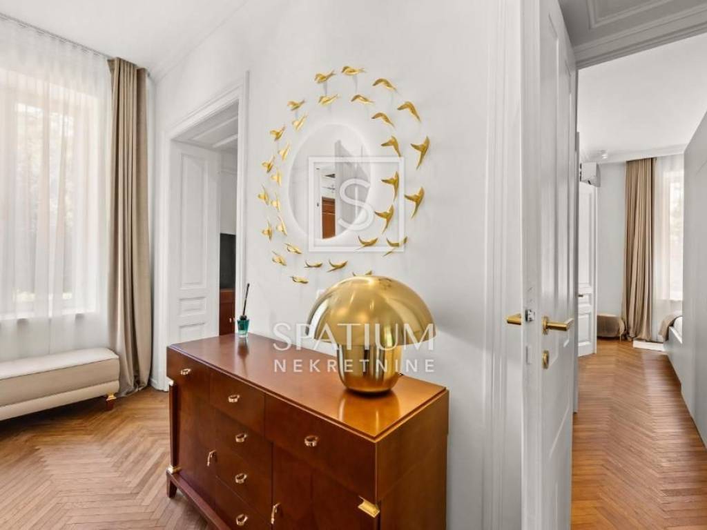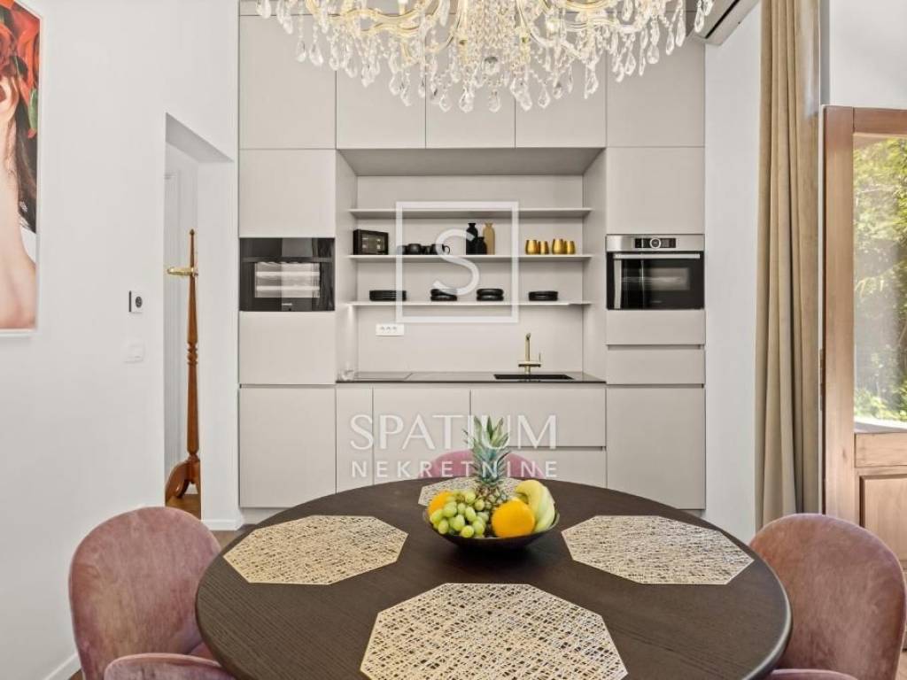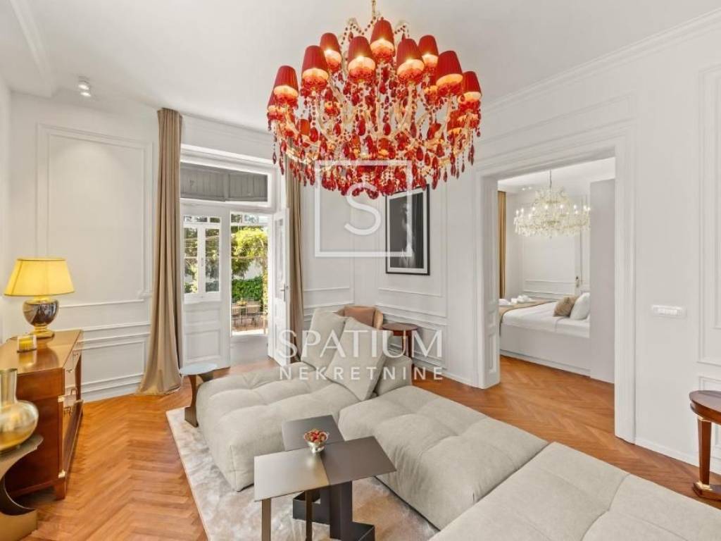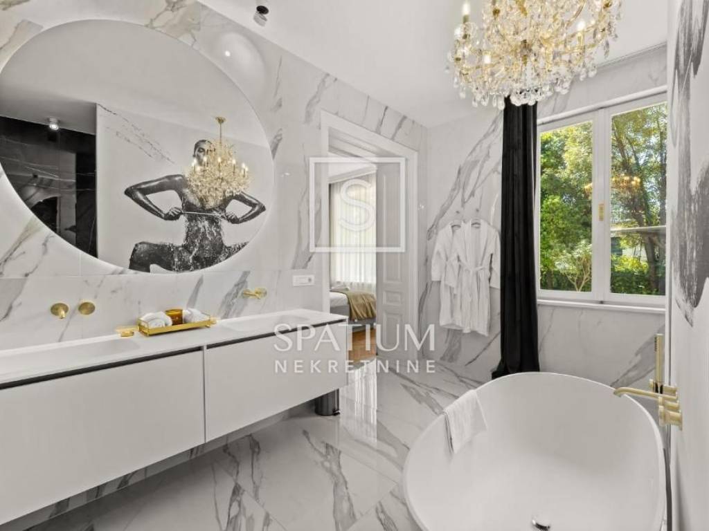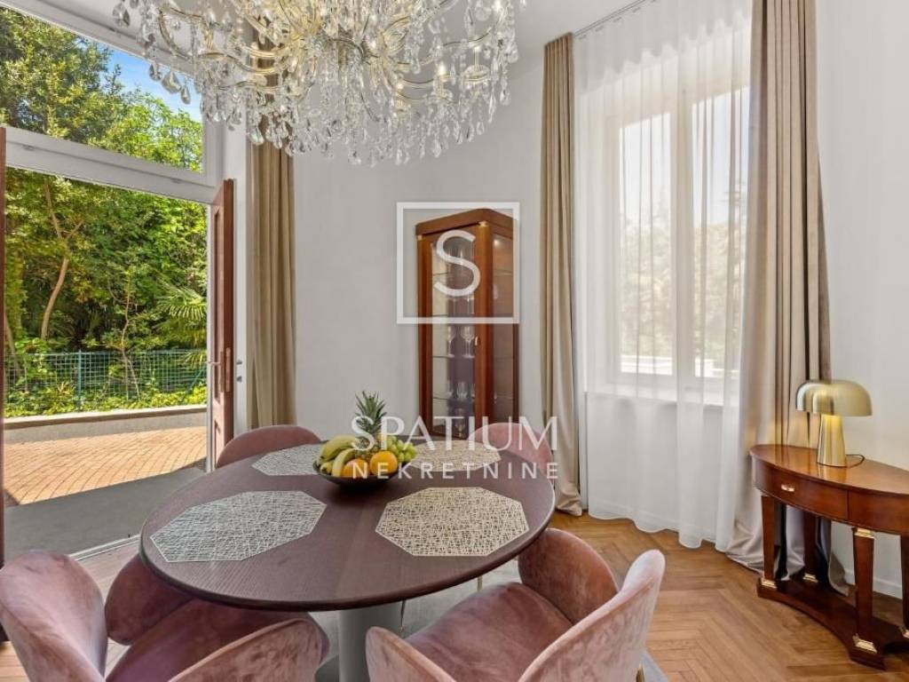 OPATIJA, we have a beautiful 1-bedroom + living room apartment in a historic villa in the center of Opatija for long-term rent. It is located on the ground floor of a villa with a total area of 150m². The apartment has been completely renovated in a modern way in accordance with the Opatija tradition, with attention to every detail. It consists of a spacious hallway that connects to an elegant living room with access to a glazed balcony, a dining room, a modernly equipped kitchen with access to a terrace, a guest toilet and a bedroom with a private designer bathroom with a shower and bathtub and a walk-in closet. Top-quality Italian furniture, unique Murano glass chandeliers as well as high-quality sanitary ware and parquet floors bring a sense of luxury and glamour. The fenced and landscaped garden guarantees complete privacy, while a heated outdoor jacuzzi, a barbecue area in the company of friends and secured parking spaces complete a pleasant stay. The apartment is rented fully furnished for a longer period. The rental price also includes weekly cleaning of the apartment (4 times a month). Utilities are paid according to consumption. RENTAL TERMS: DEPOSIT: 1 month's rent ADVANCE PAYMENT: 1 month AGENCY COMMISSION: 1 month's rent OPATIJA, a beautiful coastal town on the Adriatic Sea and a famous 19th century health resort, is a popular destination for tourists from all over the world. The city is surrounded by unique natural beauty. It is located below Mount Učka, which is a favorite destination for hikers and hikers, at the crossroads between the green Istrian region and the coast, and forms a perfect balance of landscape. The city offers a beautiful view of the sea and the nearby islands of Krk and Cres. It is surrounded by charming historic towns with narrow streets and a rich history. Opatija is adorned with a large number of unusual sights, a large number of beaches, clear sea, and its city streets are dotted with houses of interesting architecture and villas from the Habsburg era. For other information, please contact us with confidence. Sanjin Latinčić licensed agent +385 91 28 99 599 sanjin@spatium.hr Spatium real estate +385 51 272 903 info@spatium.hr