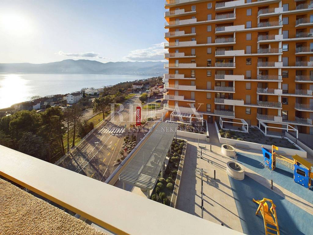 Situated on the 4th floor of a modern residential building with an elevator and energy certificate A+, the southwest orientation provides plenty of natural daylight throughout the day. A balcony stretching along the southern and western sides of the apartment, along with a southern-facing loggia, offers postcard-worthy views of the sea and Opatija.