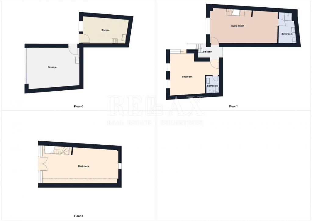 The ground floor consists of a spacious kitchen with a dining area, a small WC with an entrance from the yard, and a garage with direct access, providing one parking space. The first floor is divided into two sections – a spacious bedroom with its own bathroom and plenty of natural light, and a living room with another bathroom and stairs leading to the attic. The attic features another large bedroom with its own balcony, offering a beautiful view of the sea and surroundings.