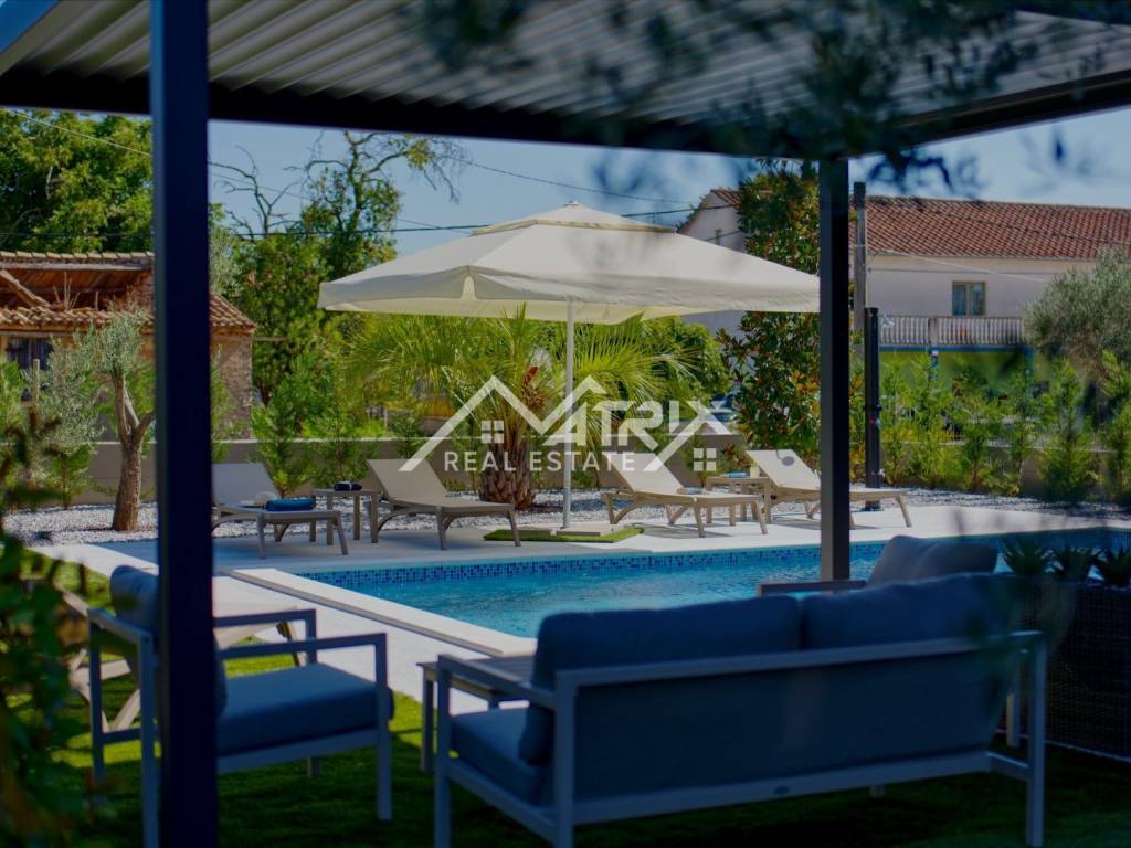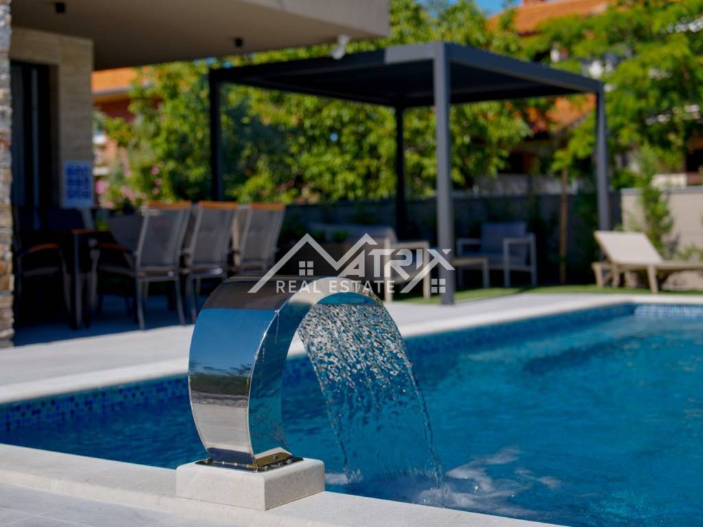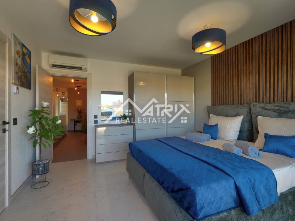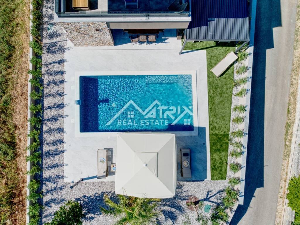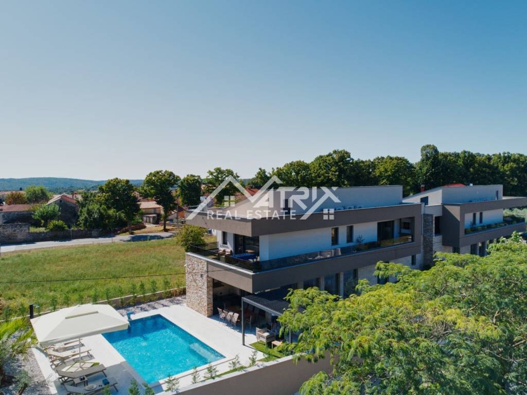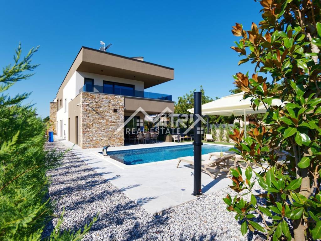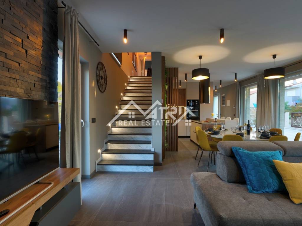 For sale is a newly built, modern semi-detached villa with a total living area of 200 m², located in a quiet area near Pula. This elegant property is perfect for those seeking luxury, comfort, and privacy – whether for personal use or as a rental investment.
