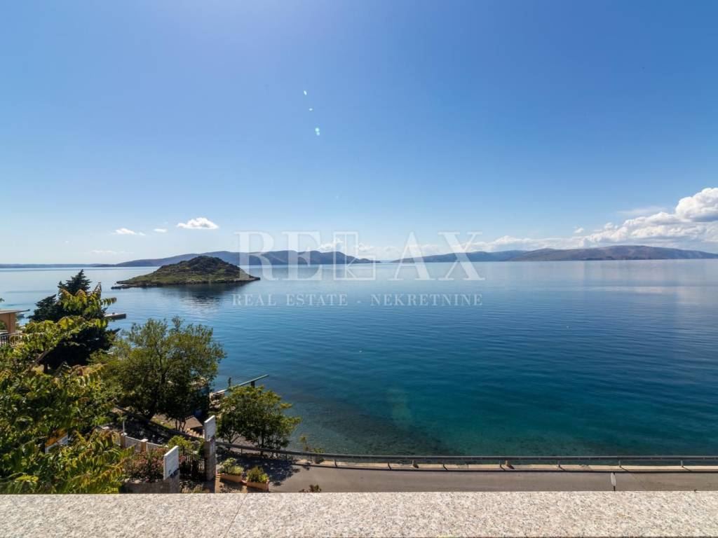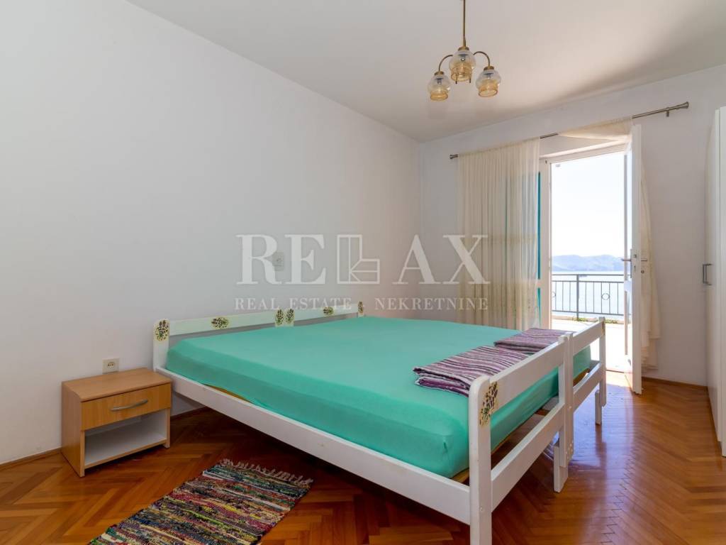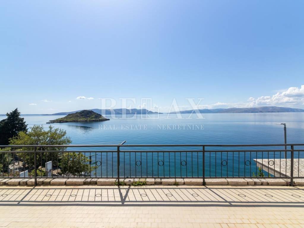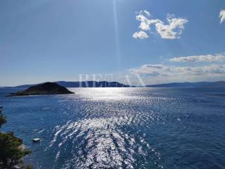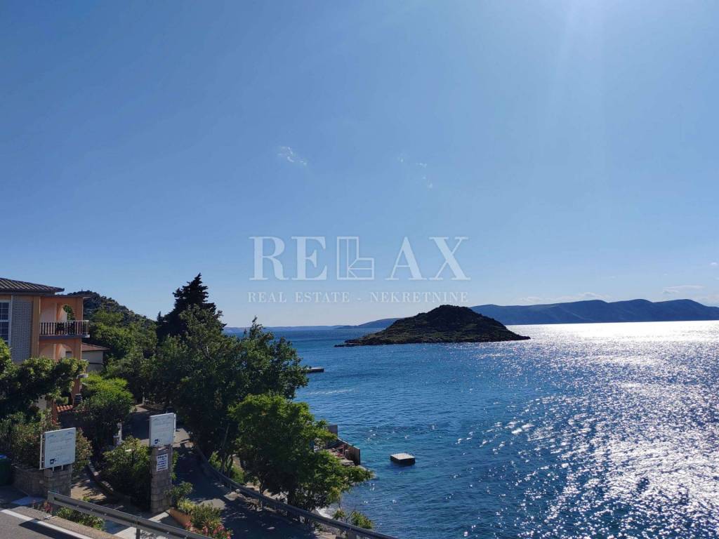 In the town of Sveti Juraj, a house located in the first row to the sea, just 30 meters from the shore, is for sale. This 410 m² house spans three floors and offers a direct sea view with southern orientation, ensuring plenty of natural light throughout the day.