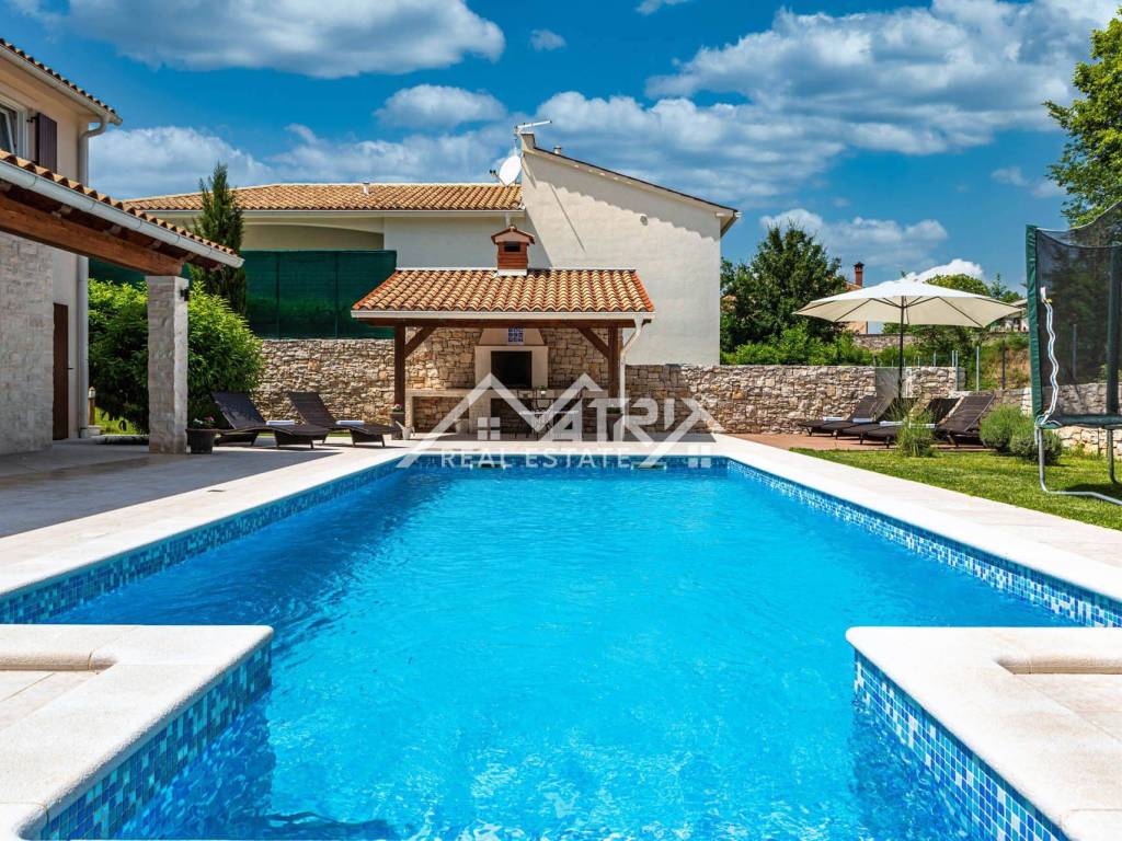 In a peaceful and picturesque Istrian village, surrounded by greenery and traditional stone houses overlooking the hills, lies this charming stone villa – perfect for those seeking authenticity, privacy, and quality. The beautiful eastern coast and its beaches are just a 10-minute drive away, and the larger town of Labin is only 9 km from the property.