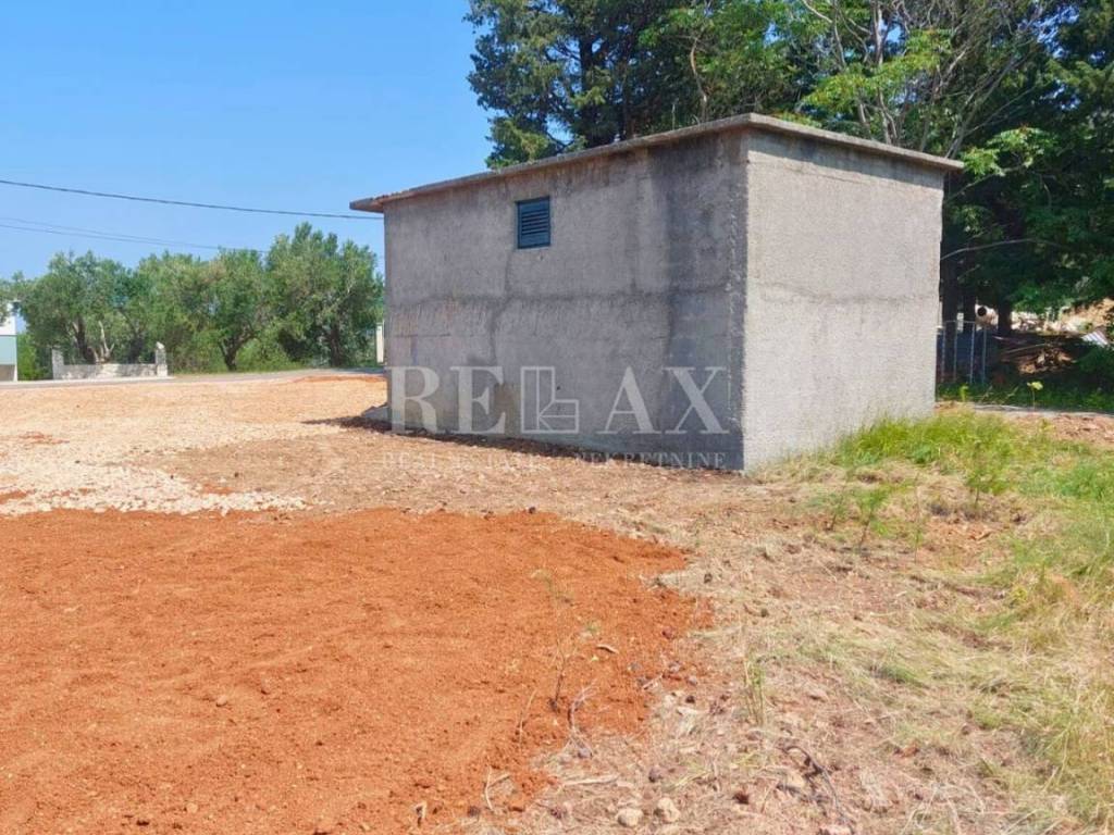 Parcela ima direktan pristup asfaltiranoj cesti, a sva infrastruktura (voda, struja) nalazi se uz zemljište. Na terenu se nalazi šahta za vodu, a u tijeku je postupak za privremeni priključak struje i izmještanje stupa na rub parcele. Teren je očišćen i blago nakošen, što omogućuje pogled na more.