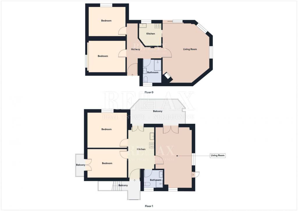 The total area of the house is 220 m², while the plot spans 400 m². The building consists of two separate apartments, each with its own entrance, allowing complete independence for residents. The ground floor apartment includes two bedrooms, a bathroom, a kitchen with a dining area, a living room, and a covered terrace that houses a summer kitchen. The first-floor apartment also features two bedrooms, a bathroom, a kitchen with dining area and living room, and a balcony.
