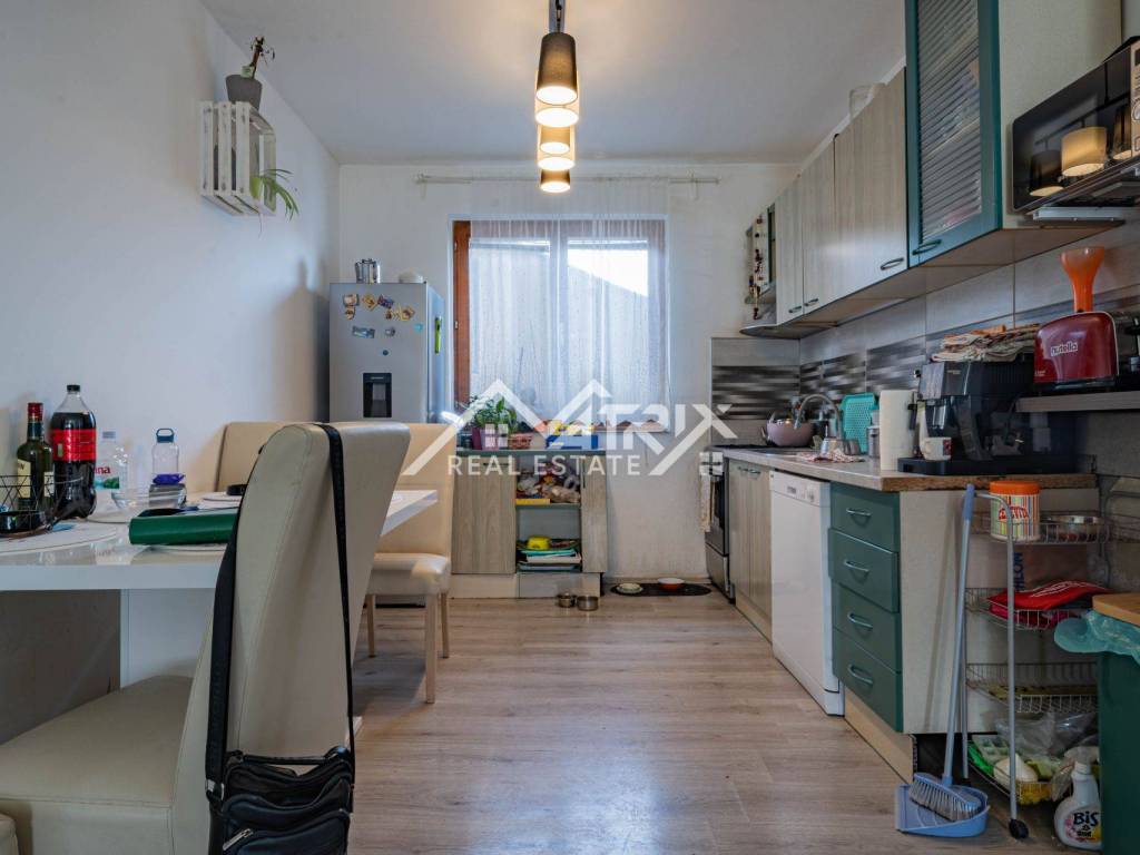 On the ground floor there is an entrance hall leading to a corridor and a spacious living room connected with the kitchen and dining area in an open-plan concept. From the entrance hall you can access a toilet and directly exit to the yard, which is very practical for everyday use.