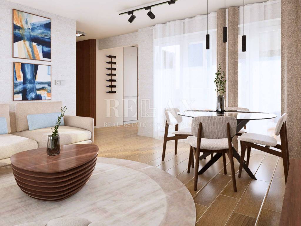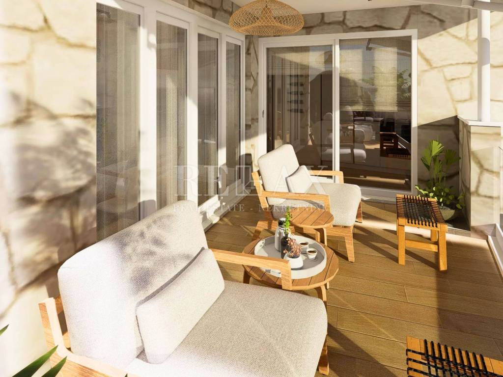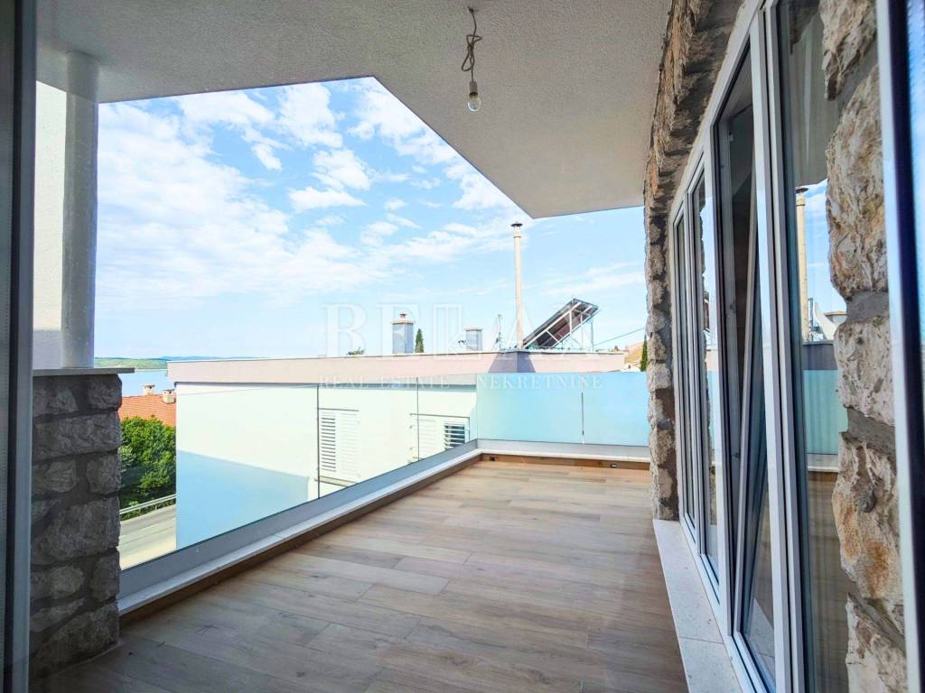 In an exceptional location in Crikvenica, just a two-and-a-half-minute walk from the well-maintained Podvorska beach and marina, there is a three-bedroom apartment occupying an entire floor of a newly reconstructed building with a total of three units. The apartment spans 101 m² of gross floor area and additionally includes a private staircase leading to the garage on the ground floor, bringing the total enclosed space to 120.76 m².