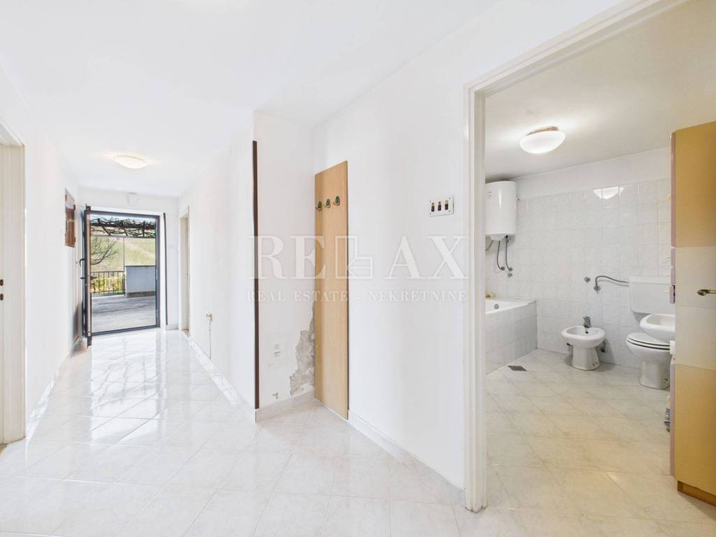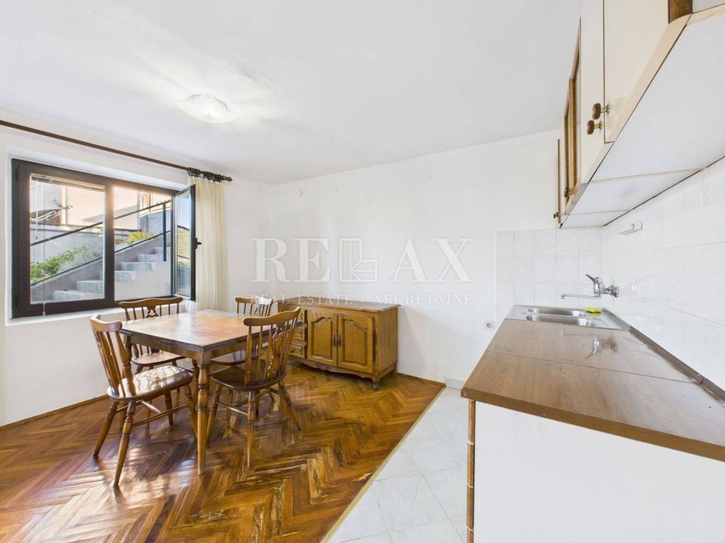 In a quiet part of Crikvenica, just 700 meters from the sea and the town center, lies this spacious 99.98 m² apartment, offering exceptional potential for permanent residence, vacation, or investment. Located on the ground floor of a house, it includes a 165.68 m² yard, ideal for a garden, children's playground, or additional amenities.