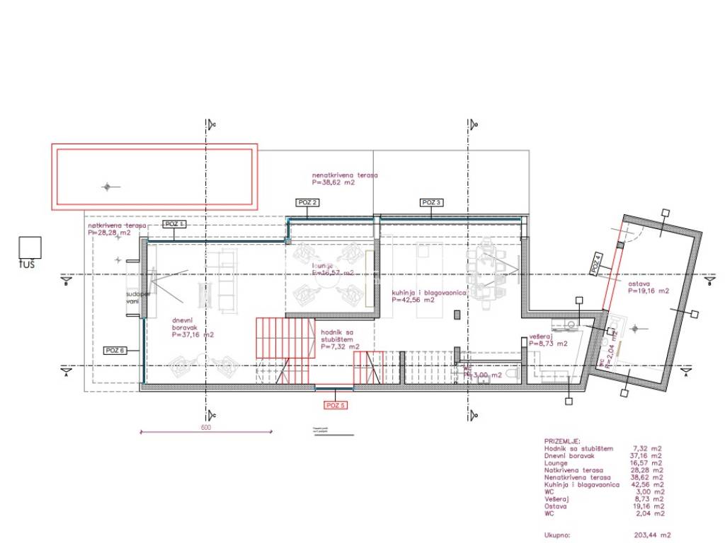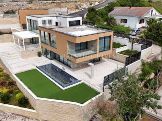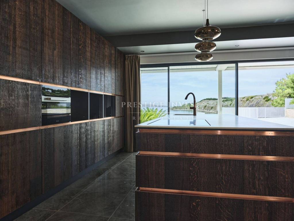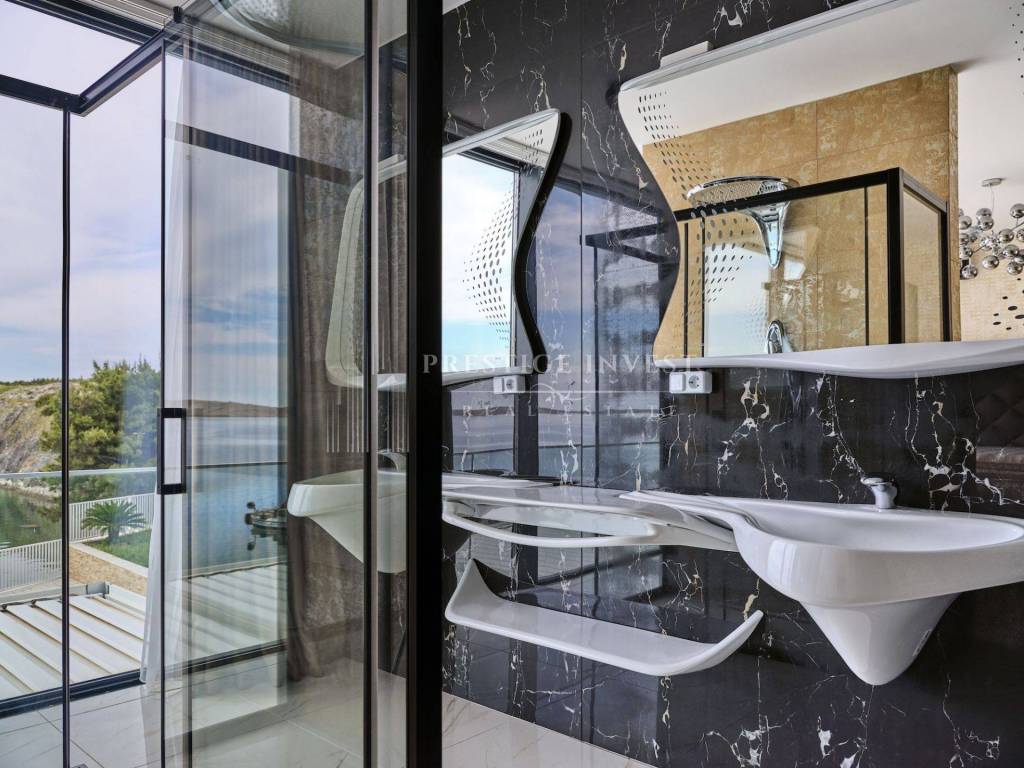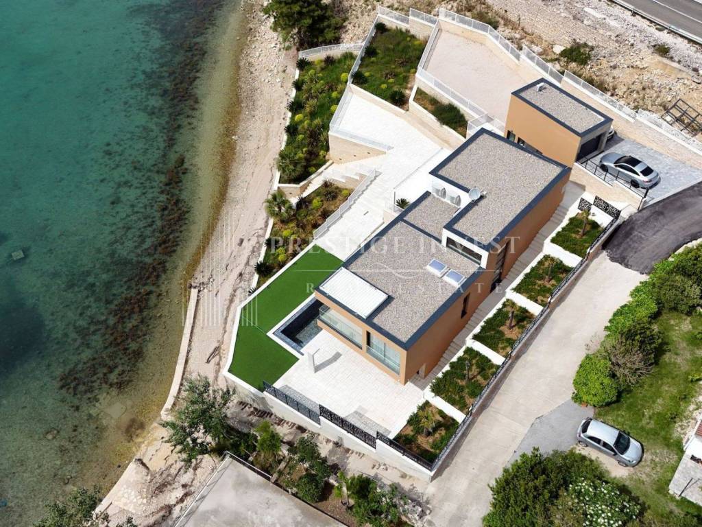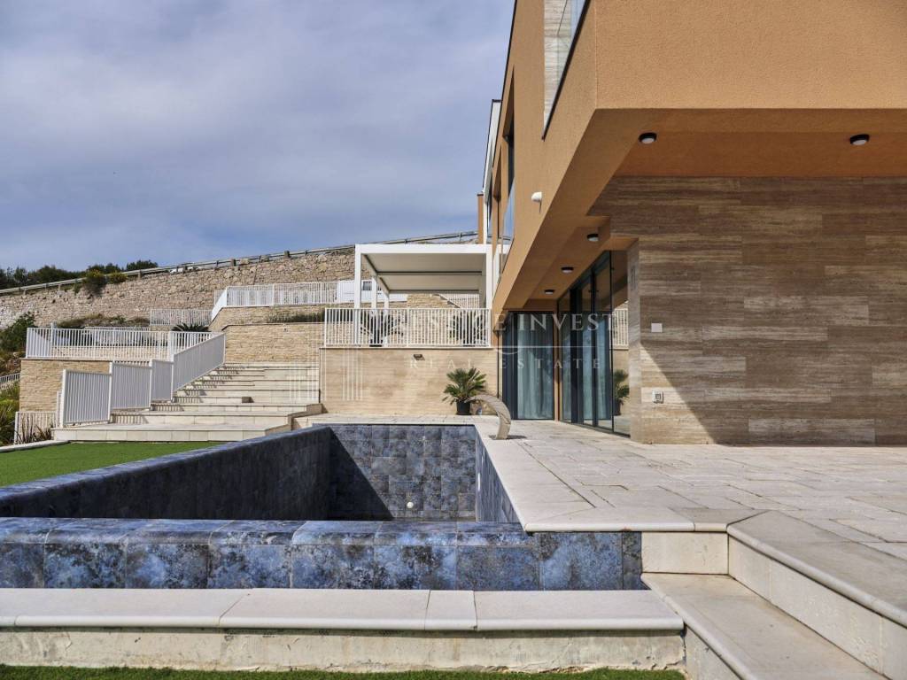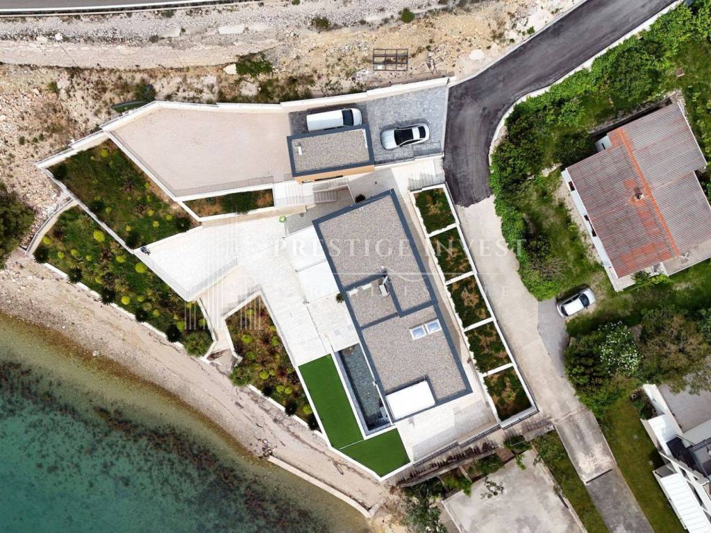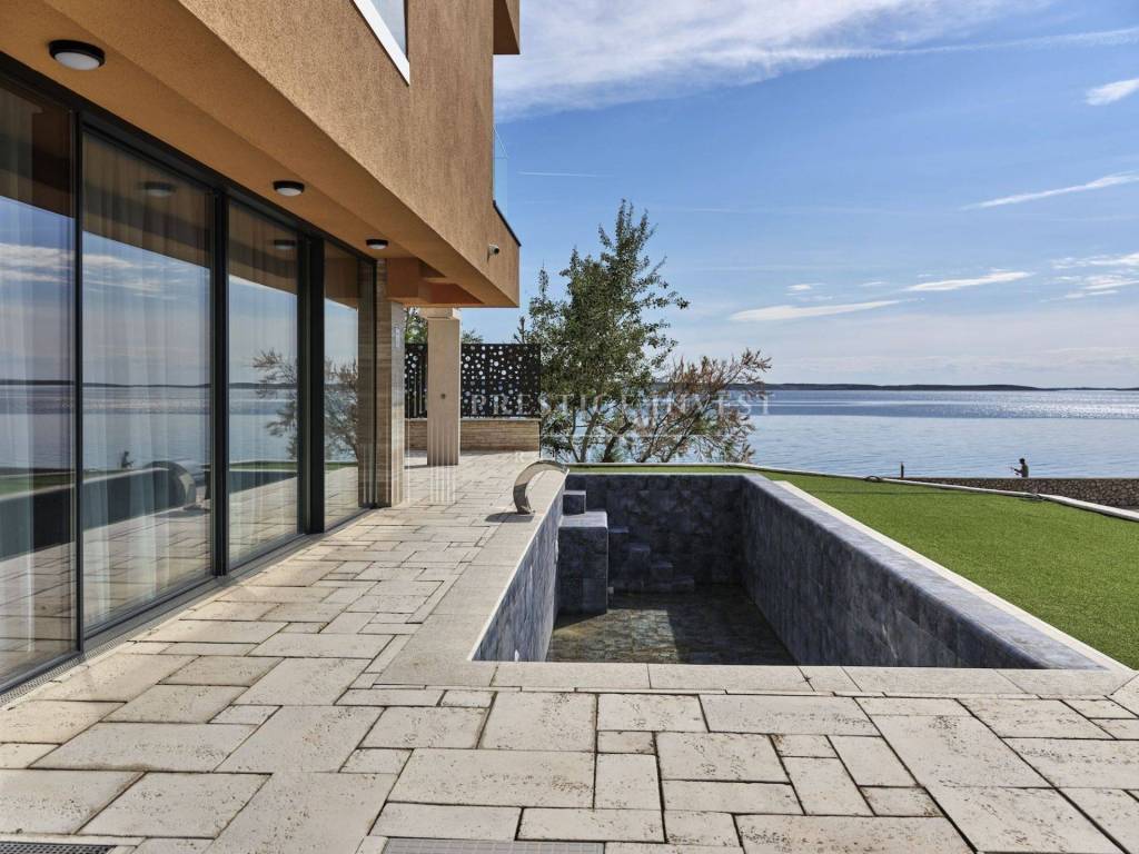 Take a stroll through this villa and experience a sense of harmony with the surroundings and the Mediterranean nature, primarily due to its strategic location offering spacious, unobstructed views of the Zadar archipelago and islands. All rooms are fitted with high-quality triple-glazed aluminum windows, further highlighting the elegance of this impressive property. The outdoor space seamlessly integrates into the overall design, adorned with luxurious palm trees and garden plants.