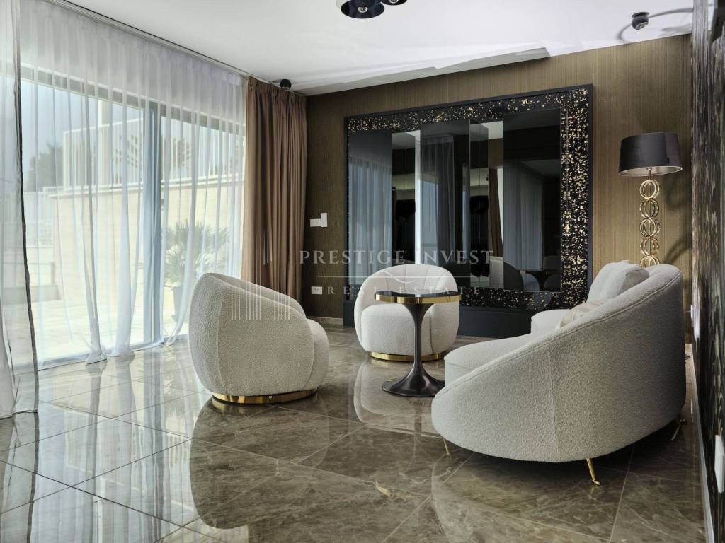 Villa Versace stands out with its exceptional interior design, carefully planned with attention to every detail, featuring top-of-the-line furniture and equipment. The tiles adorning the villa are from the Versace brand, complemented by designer lighting from LODES.