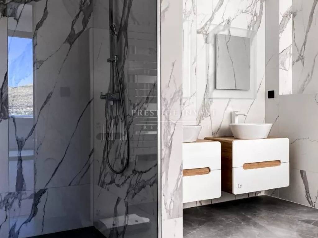 This modern, luxurious villa is also one of the few properties along the entire Adriatic coast, located in the first row along the coast. Most new buildings in Croatia are usually built a few hundred meters away from the sea or inland. This results from the limited availability of the coast and increasingly strict building regulations, which prohibit the construction of buildings on the coast itself.