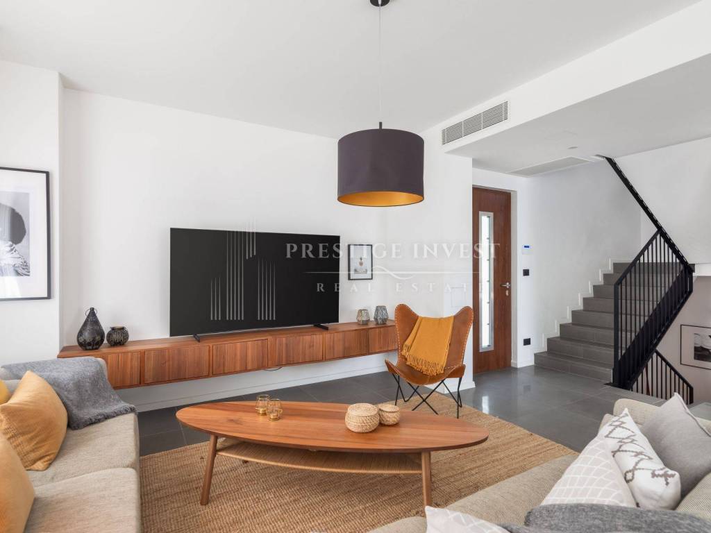 The villa is sold fully furnished and equipped with an alarm system and cameras, an automatic garden irrigation system, a fire alarm, Wi-Fi internet, underfloor heating in all bathrooms and is fully air-conditioned.