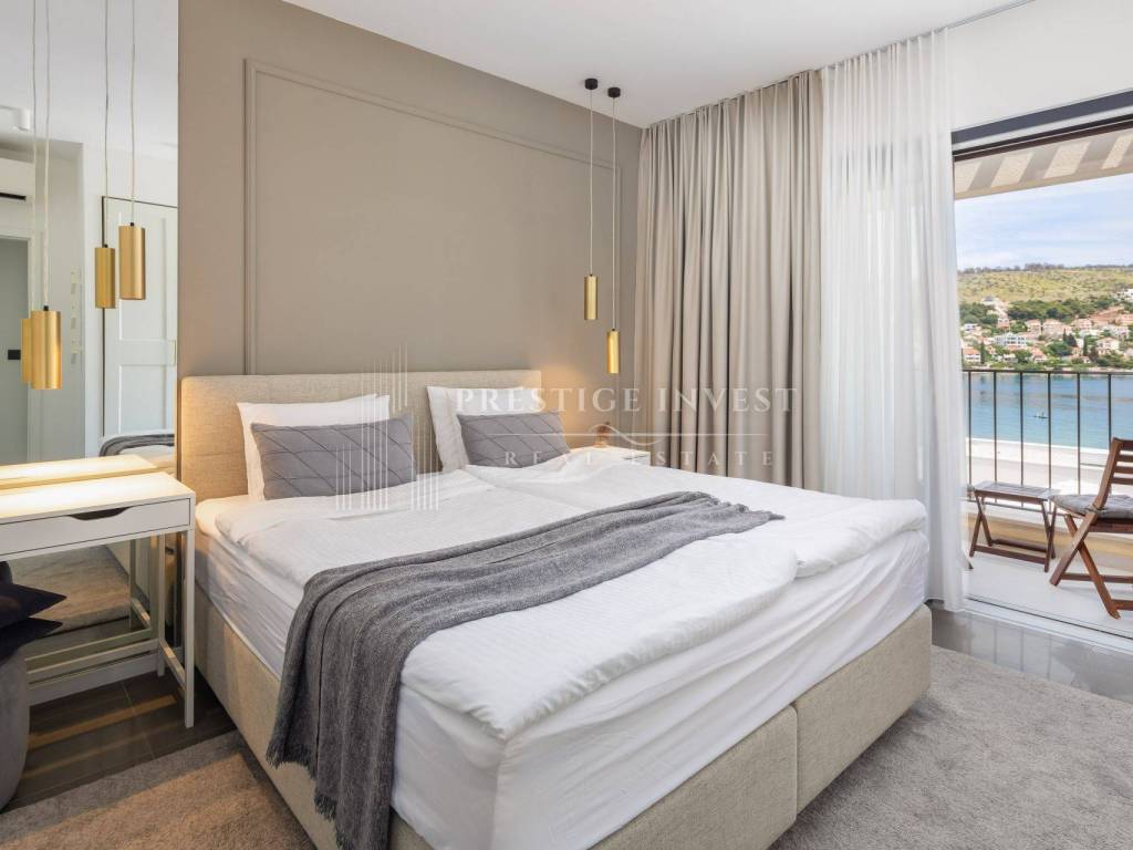 We are selling a beautiful modern villa with a pool, located in the second row to the sea on the island of Čiovo. This luxurious villa with a landscaped garden of 501 m2 is located only 30 meters from a beautiful pebble bay.