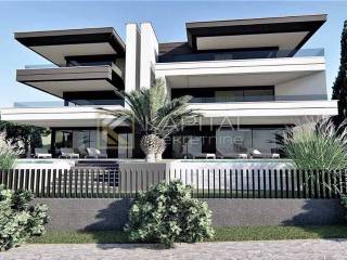 Lovran, penthouse with a roof terrace with a total area of 171.06 m2. It consists of a living room with kitchen and dining area, 3 bedrooms, one of which has its own bathroom and dressing room, another bathroom, toilet, pantry, hallway, 3 balconies, and a roof terrace with pool and open sea view. The apartment has a storage room of 19.36 m2 and 2 parking spaces. Quality new building with underfloor heating, heat pump and duct air conditioners. Great location just 150 meters from the sea. For all information call 091 / 450-5150