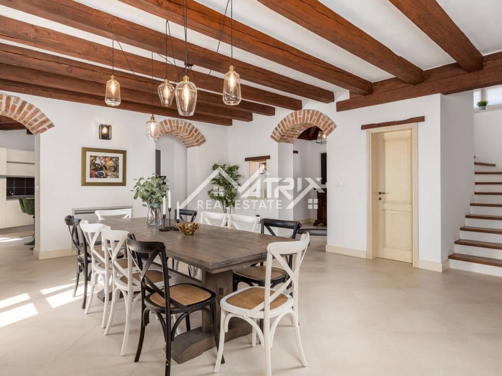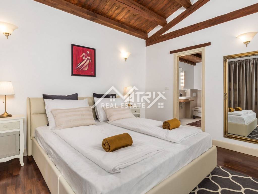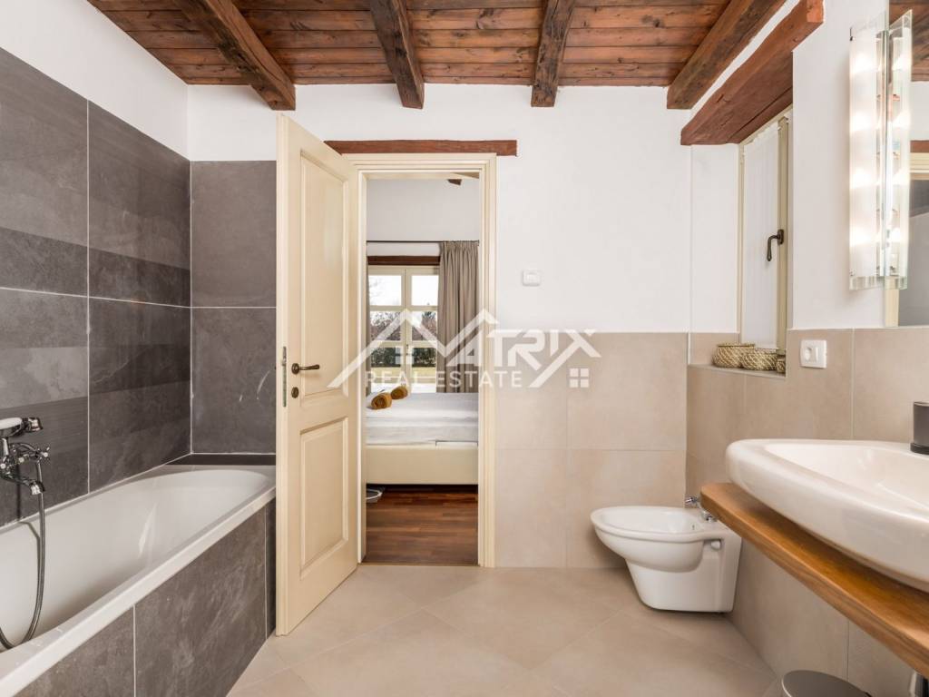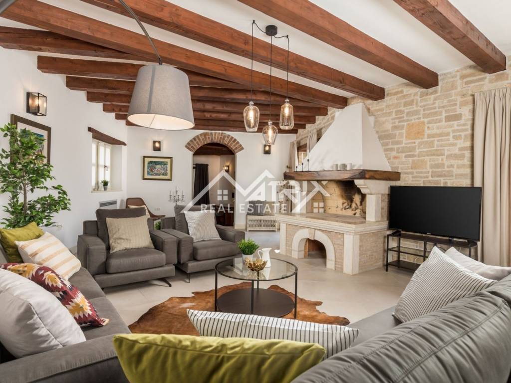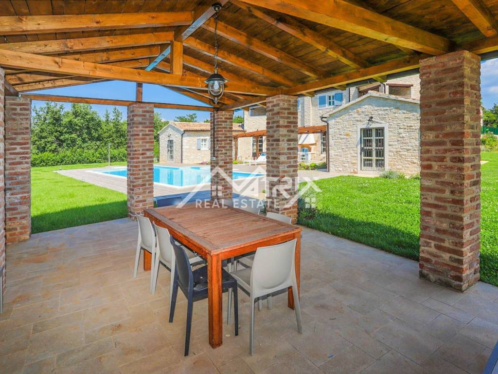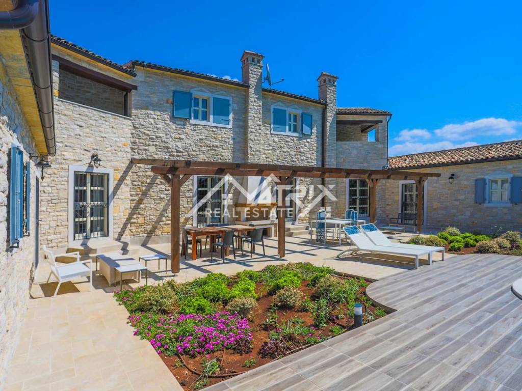 In a quiet village in the wider area of ​​Poreč, this luxury and rustic villa with a swimming pool is for sale, with a total living area of ​​269 m2. The villa is located in a fantastic location in nature, with a spacious garden. The villa is designed, built and equipped to provide the owner with maximum luxury, pleasure and comfort. The center of Poreč is 22 km away from this beautiful villa.