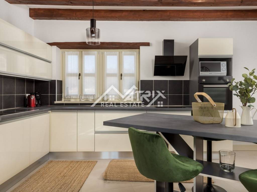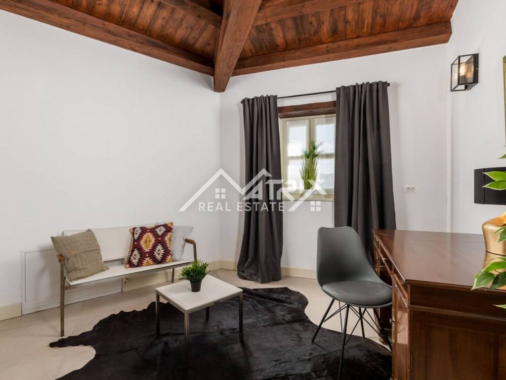 The house is sold fully furnished and equipped as seen in the pictures. All furniture is custom-made and every detail was taken care of to make the house at the highest level. Underfloor heating is installed throughout the house, and each room also has a fan-coil air conditioning unit for heating and cooling.