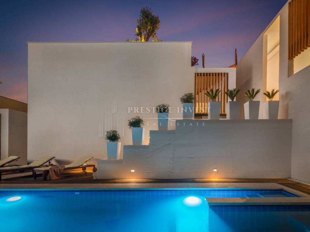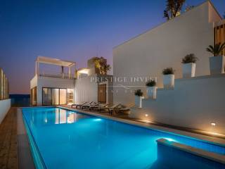 The villa is modernly equipped with an elevator and electric chargers for cars, green areas on the roof and pergolas.