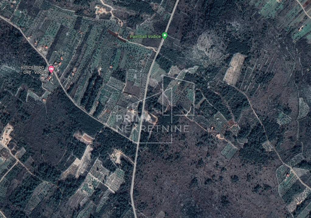 U zaleđu Vodica, uz glavnu prometnicu prodaje se poljoprivredno zemljište površine 6.607m2. Gotovo je pravilnog oblika pravokutnika dimenzija približno 56 m uz cestu, te 101 m u dubinu. U naravi je neuređeno zemljište na kojem se nalazi makija i nisko raslinje, u potpunosti ograđeno suhozidom. Od mora i centra Vodica udaljeno je 4,5 km.