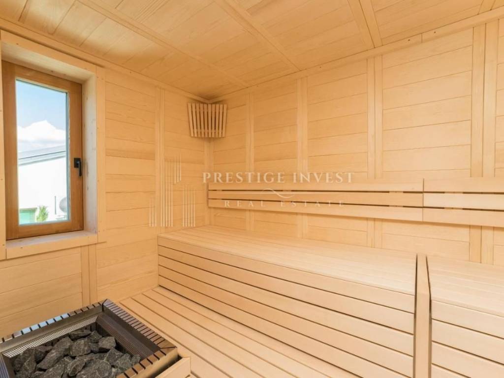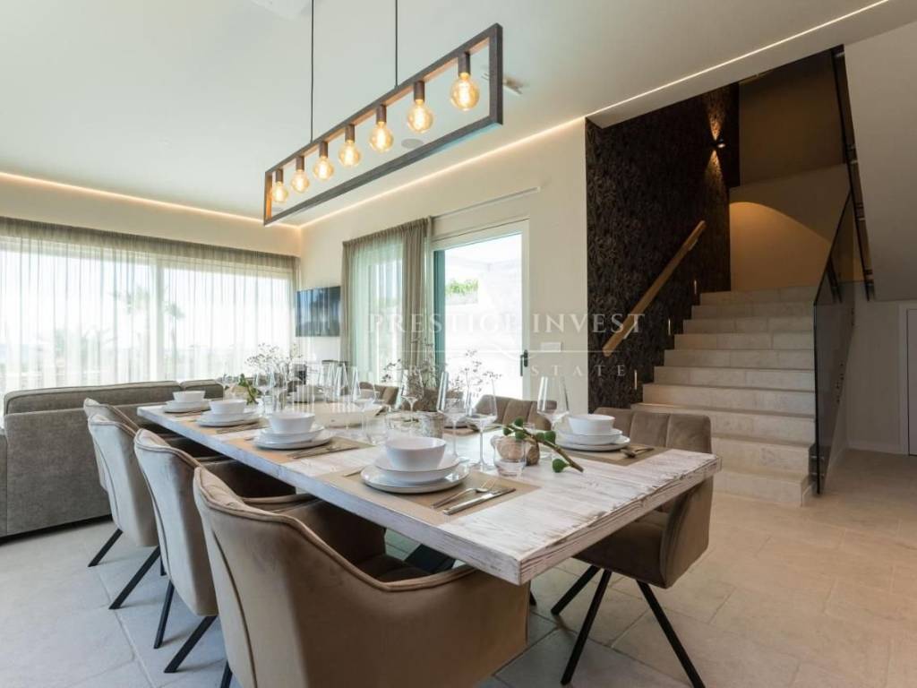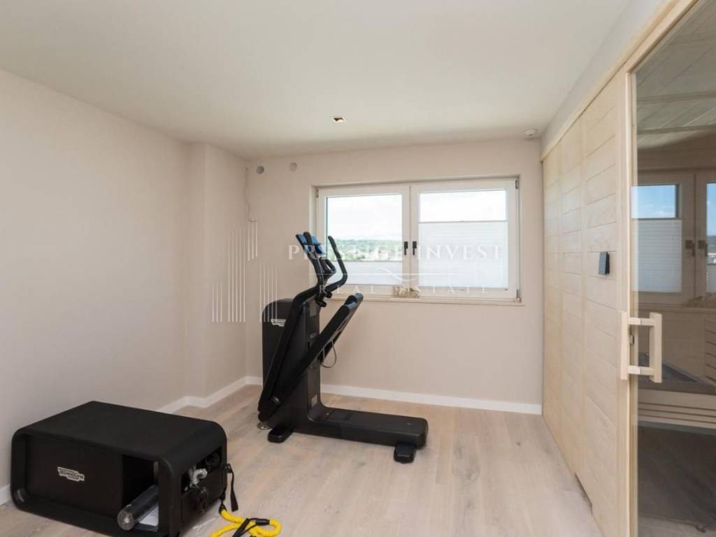 Ground floor: spacious living room with dining area and open kitchen, fitness room with access to the terrace with swimming pool.