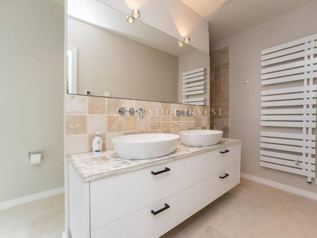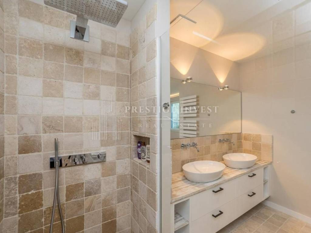 High-quality construction: aluminum joinery, natural French and Portuguese stone flooring, first-class sanitary equipment (Steinberg, Axor, Geberit).