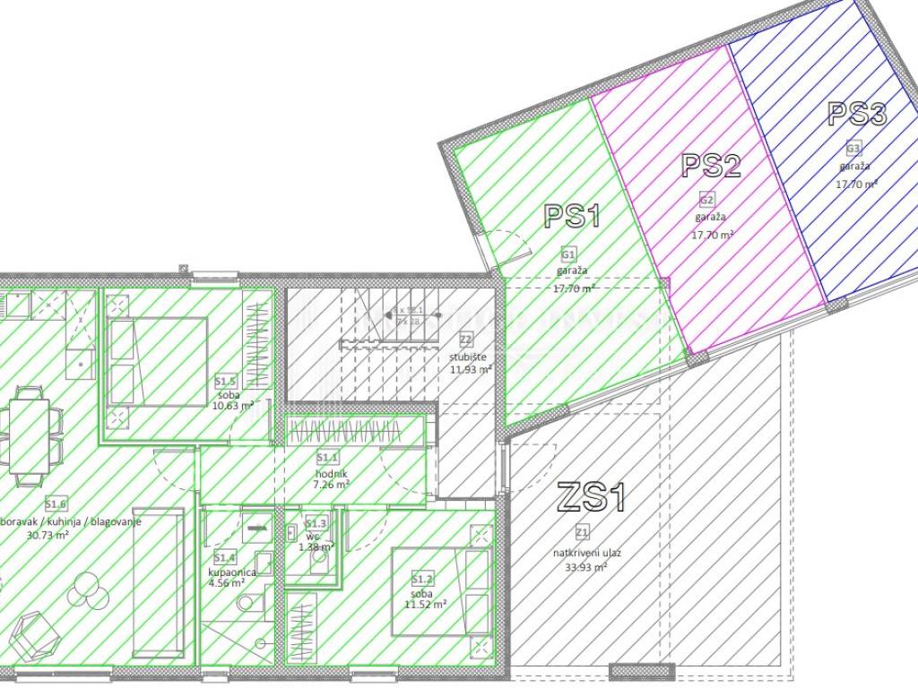Location: Center of Sukošan Total usable area (calculated): 94.37 m² Price: €471,850 Garage + parking space Private garden and two terraces Sea view