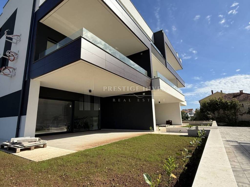 Apartment 1 — luxury new building in Zaton, 20 m from the beach We offer Apartment 1, located on the ground floor of a luxury new building in Zaton, only 20 meters from the beach. The building is under construction and consists of 6 apartments and 2 exclusive penthouses. All apartments have an open sea view.