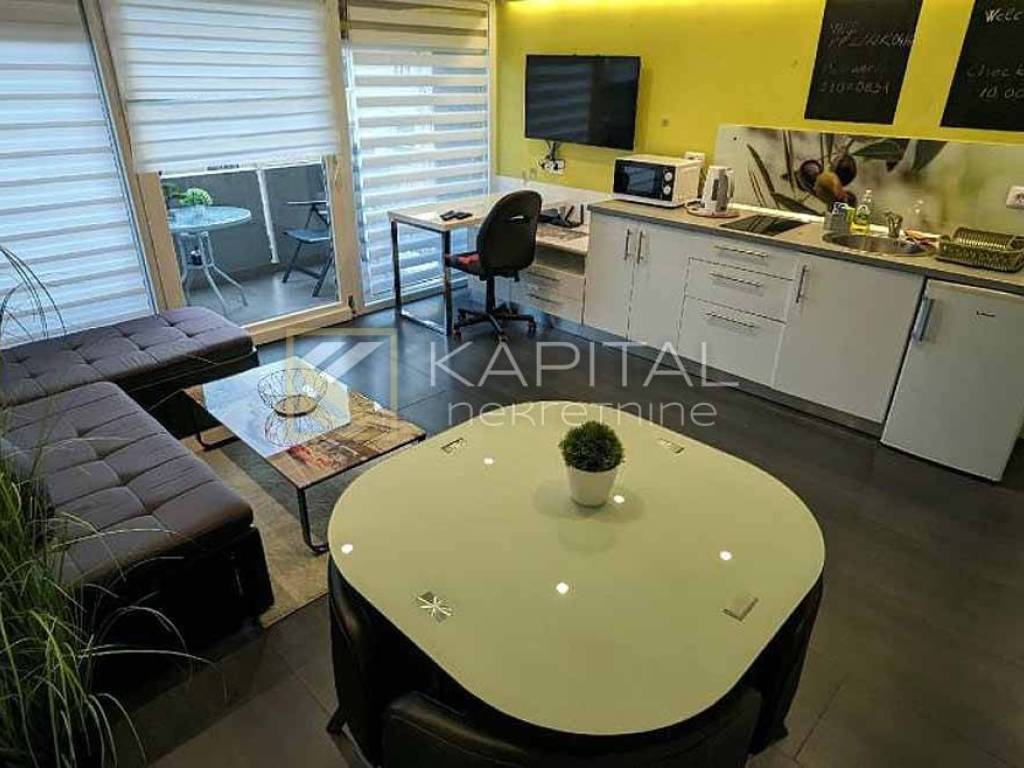 We offer two well-established, newly renovated and modernly equipped 2 apartments. They are categorized with 3 stars. Excellent location of well-maintained reinforced concrete building from 1965 with elevator and video surveillance. Both apartments consist of a bedroom, a living room with a kitchen and dining room, and a bathroom. The apartment has three air conditioners for heating/cooling, central heating with radiators, four TVs, complete kitchen equipment... The apartment has two sunny balconies with a partial view of the sea, facing south and east. Parking reserved for building tenants only is also available. Ideal for daily and monthly rent as well as for housing. Pure ownership without encumbrances. For any additional information, call 091/540-8520 or 099/219 6353.