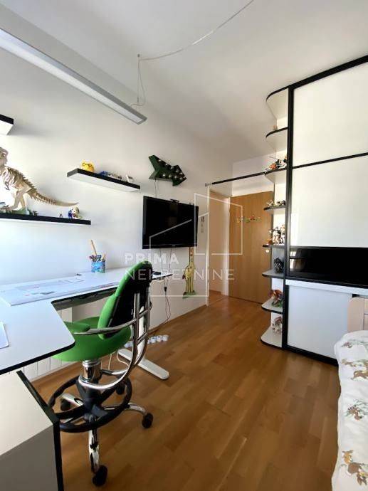 All rooms are air-conditioned with four indoor units. The entrance door is of the highest security level, featuring sound insulation and an advanced access system that includes fingerprint recognition, a code, or NFC opening. The loggia is enclosed with a frameless design. The apartment is equipped with built-in sliding wardrobes and high-quality windows made of PVC, PVC/aluminum, and wood/aluminum with triple glazing. It is sold fully furnished. Residents also have access to a large shared terrace of approximately 70 m².