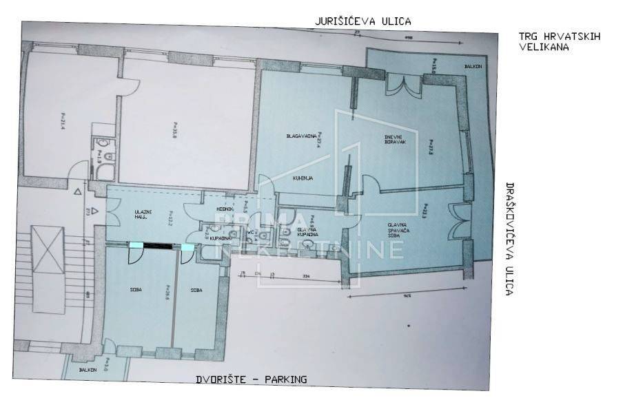 A spacious four-room apartment of 152.43 m² is for sale in the very heart of Zagreb, located on Jurišićeva Street, just a two-minute walk from Ban Jelačić Square. It is situated on the fourth and top floor of a well-maintained residential building dating back to 1929.