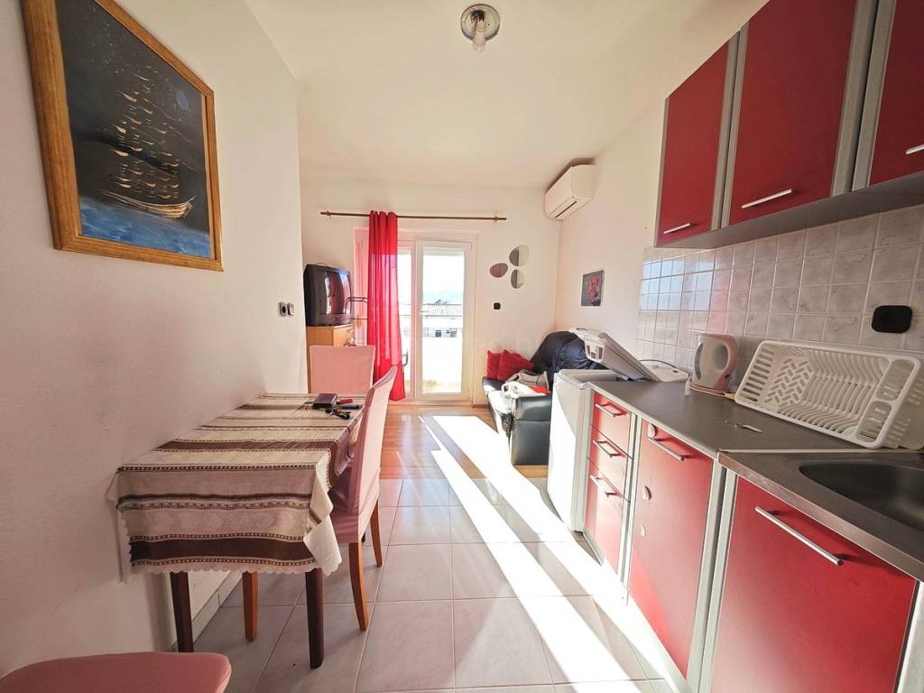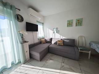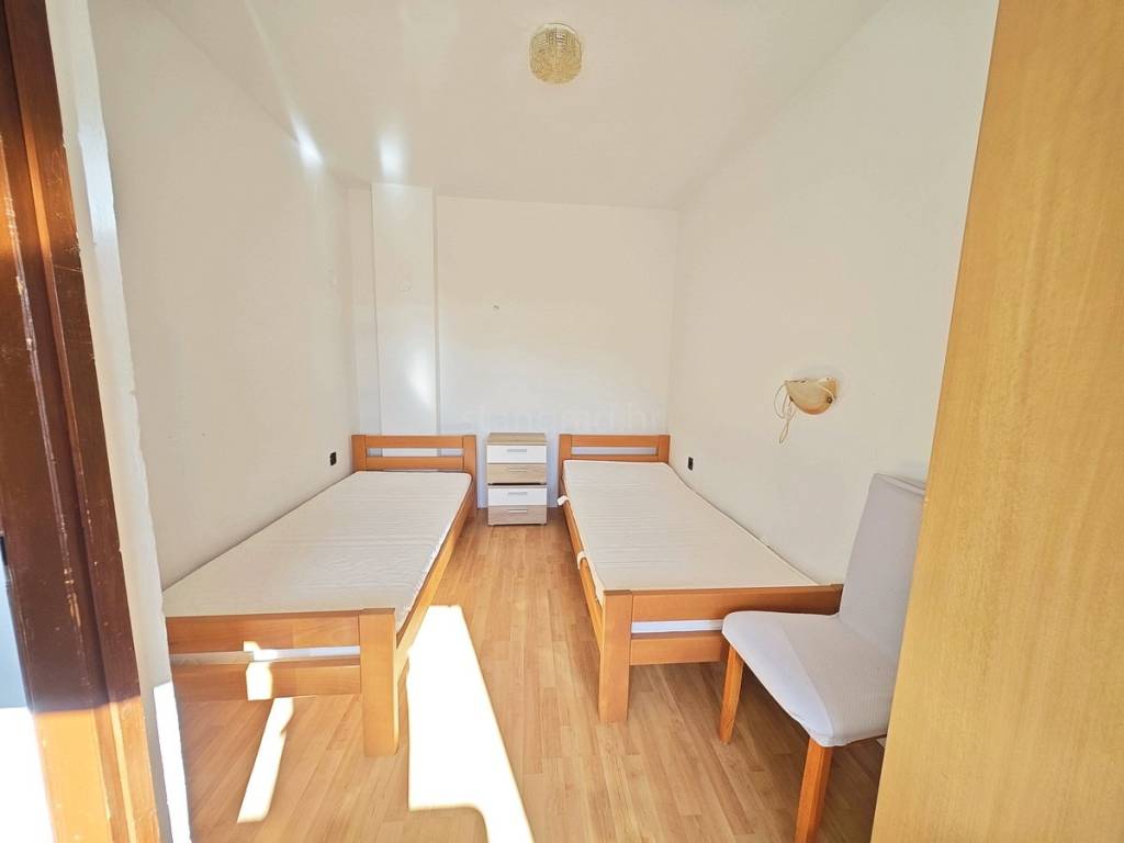 Located on the first floor of a well-constructed building, the apartments have a total area of 83 m². Each apartment consists of a kitchen with a living room, two bedrooms, a bathroom, and a covered terrace. The interior is very well maintained, fully furnished with quality furniture and equipped with all necessary household appliances.
