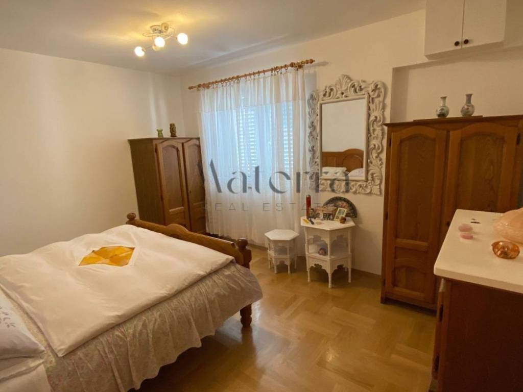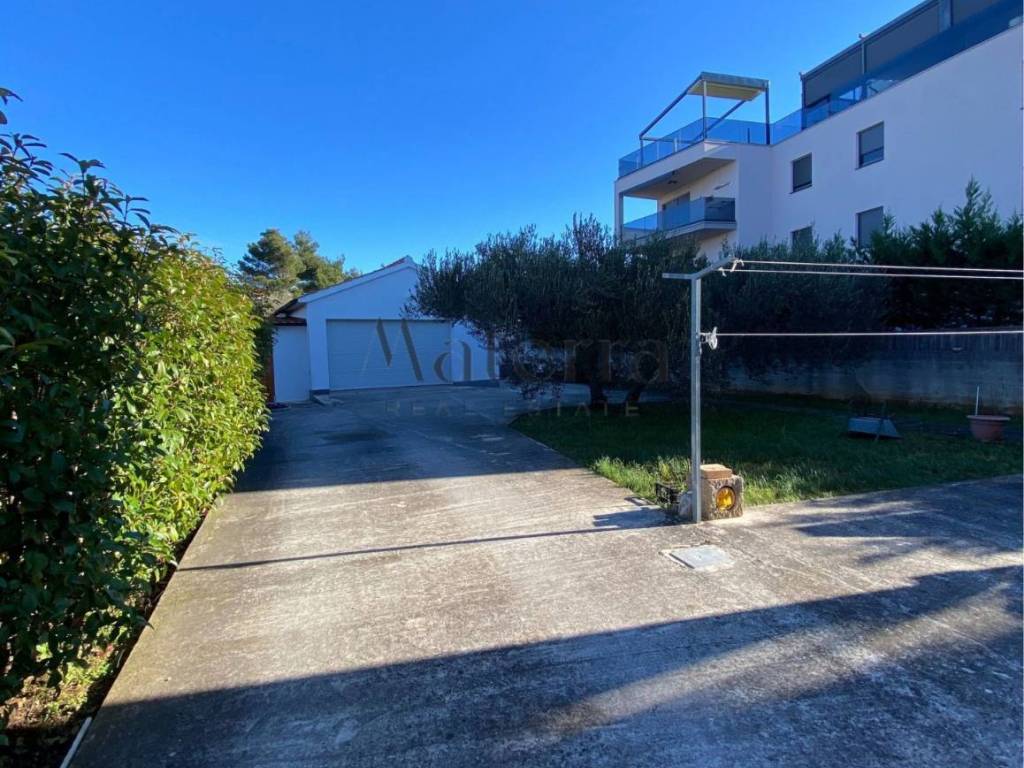 The house also includes a spacious parking area at the entrance for 4+ cars, and at the rear, there is a separate garage of approximately 50 m2. Due to the garage's size, there is potential for expansion, creating an additional apartment. Next to the garage, there is a grill house with a separate entrance.