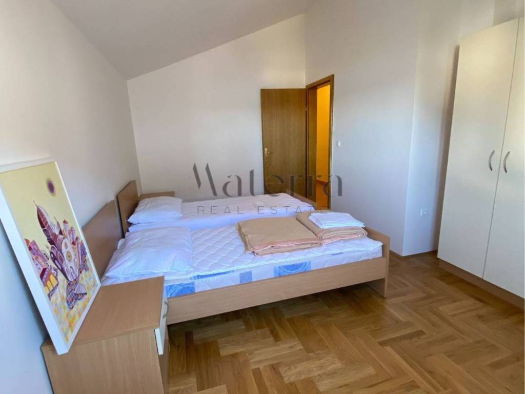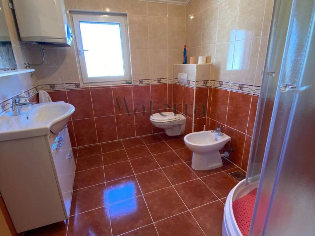 The rear part of the house contains two additional apartments. The ground floor apartment has one bedroom with a kitchen and bathroom, while the first floor apartment includes two bedrooms, a bathroom, and a kitchen. These apartments have never been used for tourism purposes and are practically new.