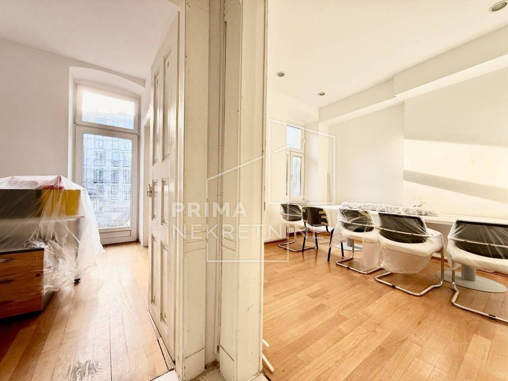 Iznajmljuje se prostran i potpuno funkcionalan poslovni prostor površine 98 m2, smješten na prvom katu zgrade bez lifta koja se sastoji od ukupno tri kata, na dobroj lokaciji u centru grada, idealan za uredske djelatnosti.