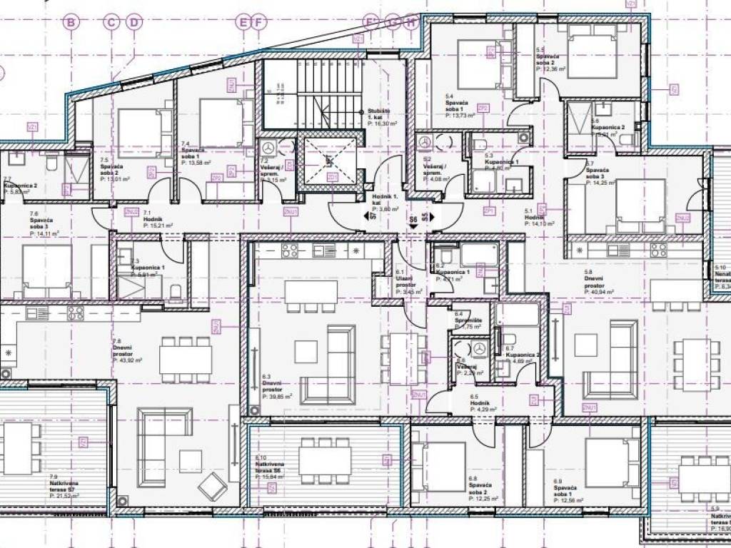 Living room – 40.94 m² Hallway – 14.10 m² Bathroom 1 – 4.80 m² Bathroom 2 – 5.01 m² Bedroom 1 – 13.73 m² Bedroom 2 – 12.36 m² Bedroom 3 – 14.25 m² Storage / laundry room – 4.08 m² Covered terrace – 16.90 m² Uncovered terrace – 6.34 m²