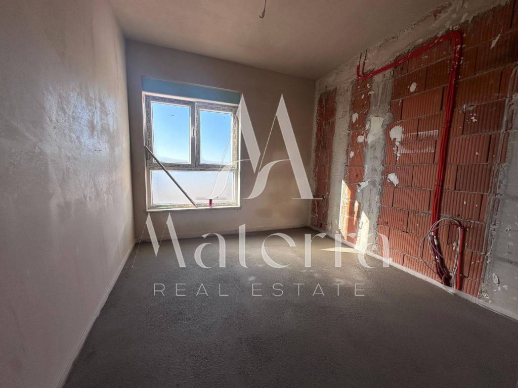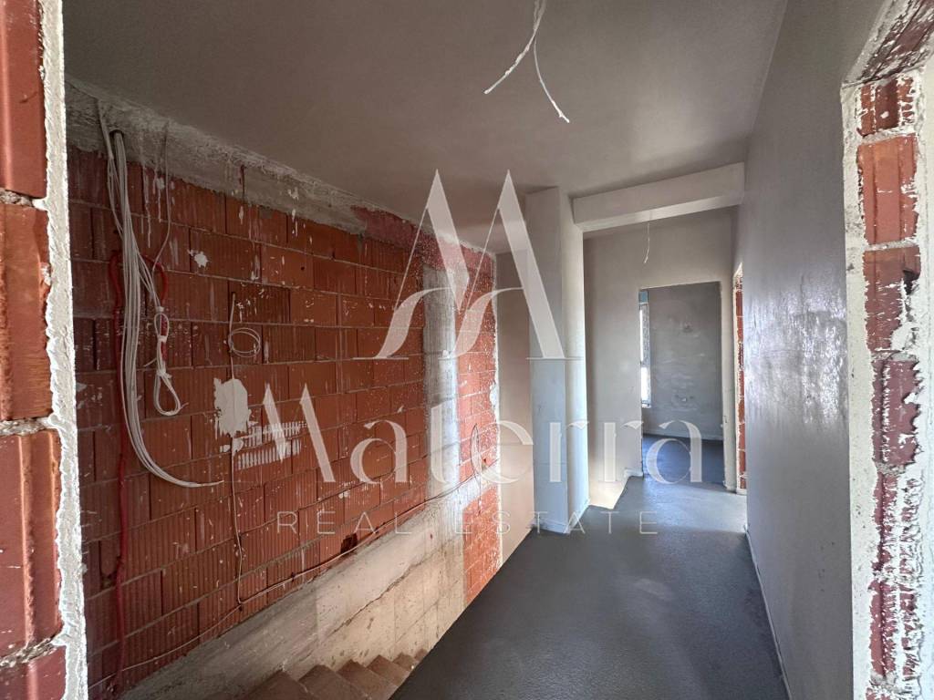 The apartment is equipped with electric shutters, air conditioning in every room, and high-quality ceramic finishes.