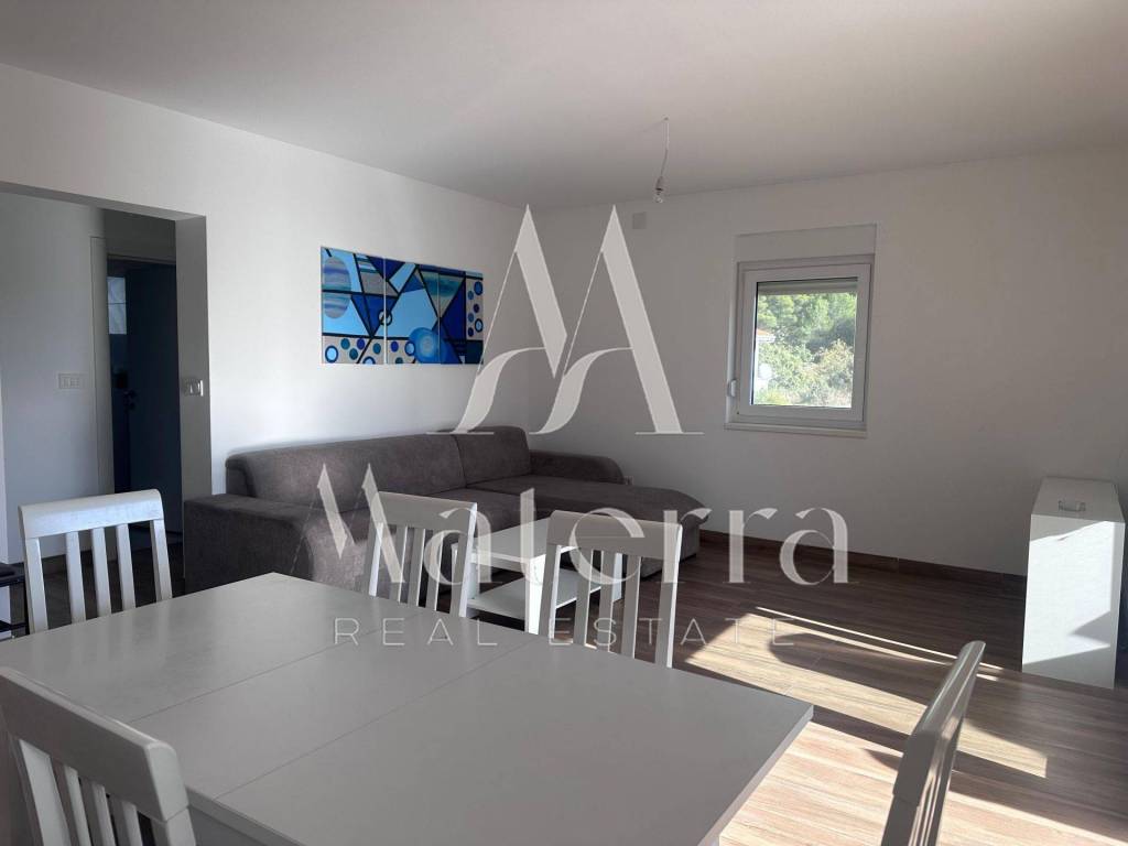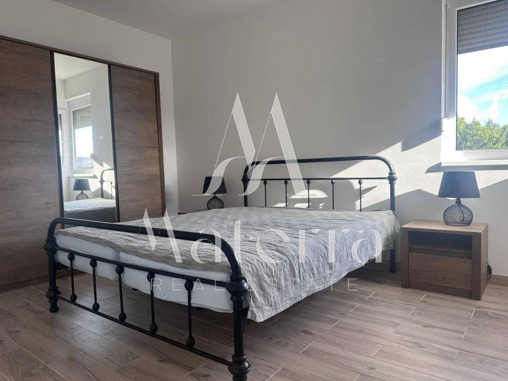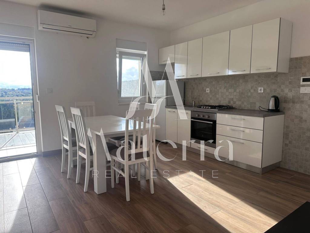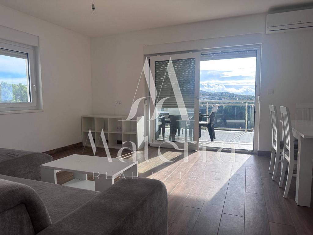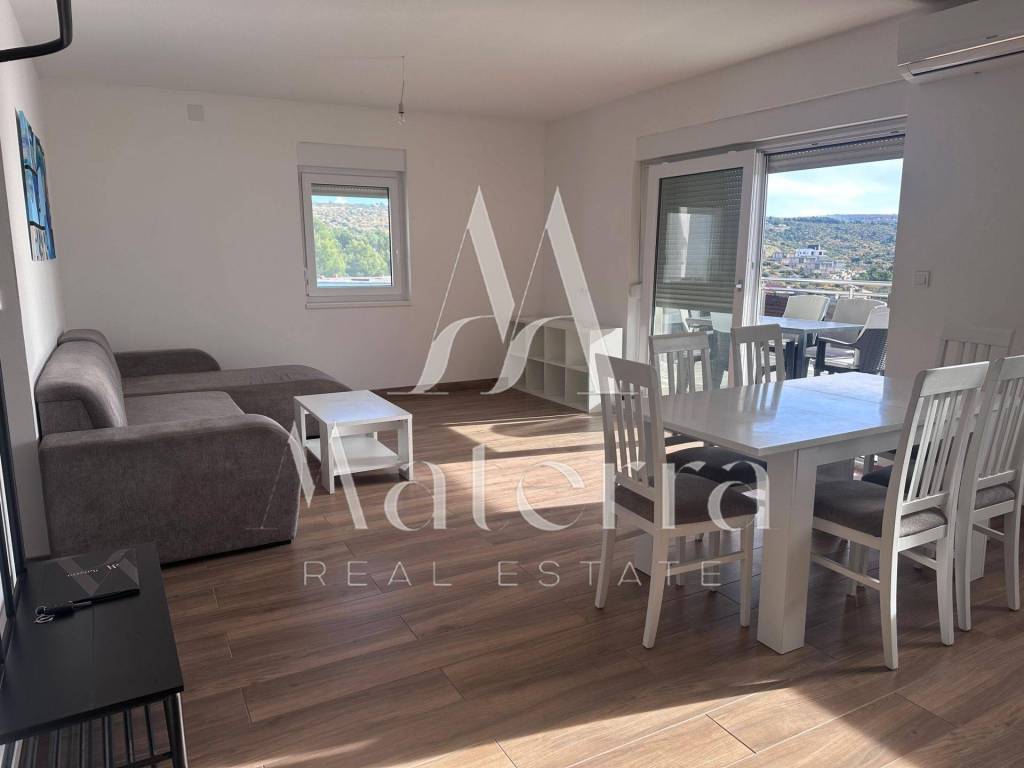 A comfortable two-bedroom apartment is for sale, located on the second floor of a smaller residential building, with a total area of 76.38 m². The apartment offers a beautiful view of the sea and Primošten. The building consists of a ground floor and two upper floors, with a total of six residential units, and is situated in an elevated and peaceful part of the town, ideal for year-round living or seasonal stays.