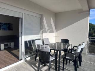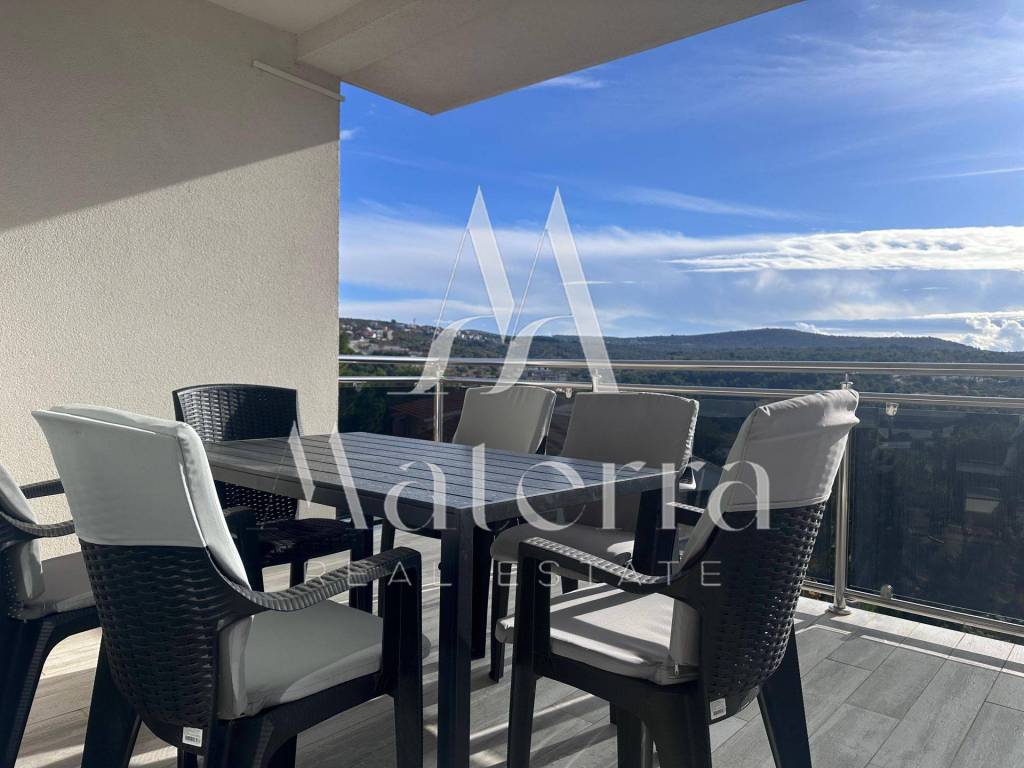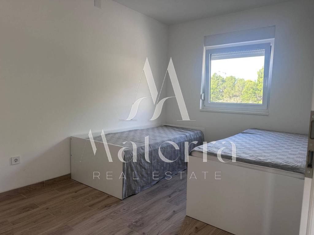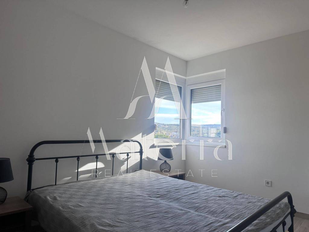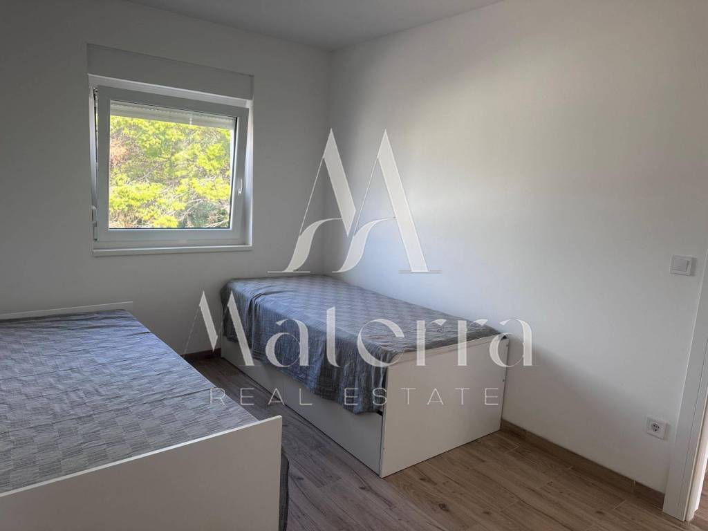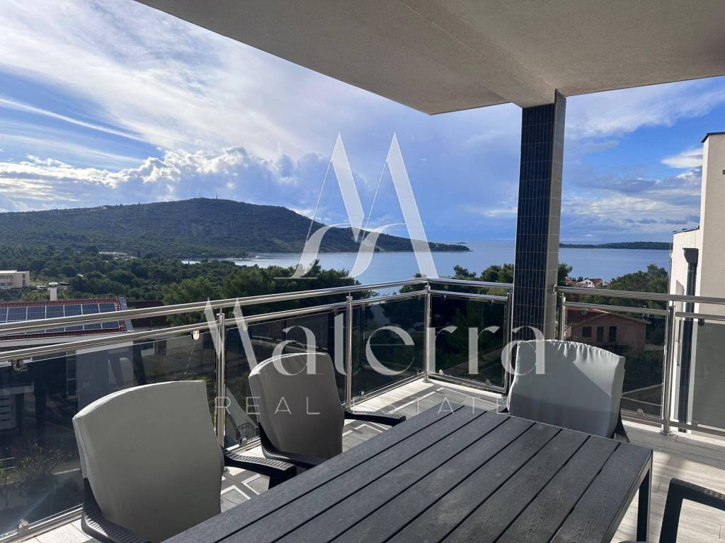 A comfortable two-bedroom apartment is for sale, located on the second floor of a smaller residential building, with a total area of 76.38 m². The apartment offers a beautiful view of the sea and Primošten. The building consists of a ground floor and two upper floors, with a total of six residential units, and is situated in an elevated and peaceful part of the town, ideal for year-round living or seasonal stays.